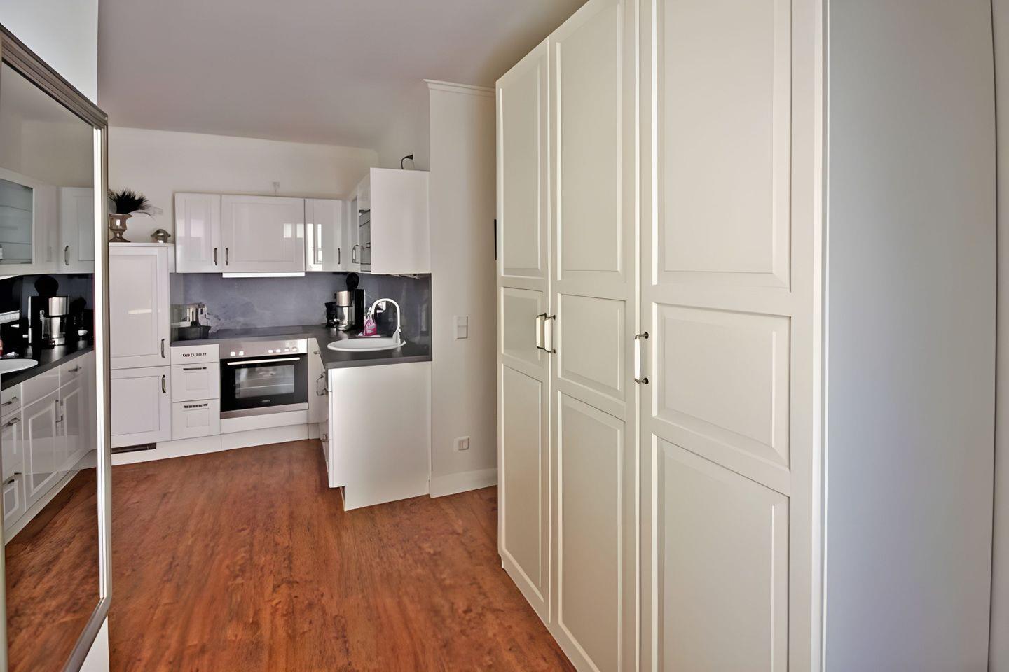 Der offene SCHLAFBEREICH verfügt über ein gemütliches Doppelbett (180 x 200 cm/ durchgehende Matratze). Das DUSCHBAD besticht mit einem modernen Design, bodengleicher Dusche, Föhn, Waschtisch und Kosmetikspiegel. Im Eingangsbereich befindet sich ein raumhoher Kleiderschrank für Ihr Reisegepäck. Neben Ihrem Wohnungseingang befindet sich zum Innenhof der Villa gelegen eine von einer Hecke umrundete herrliche TERRASSE. Die kompakte Ferienwohnung liegt nur 50 m vom Strand entfernt. Eine Fußbodenheizung sorgt in allen Räumen zu jeder Jahreszeit für angenehme Wärme.