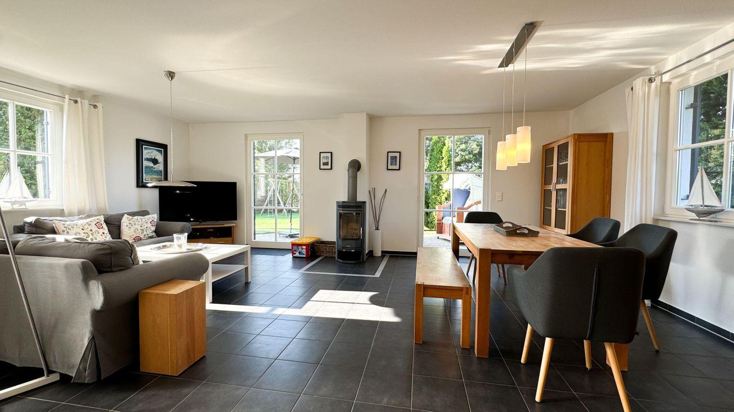 Das Reetdachhaus „Reet am See“ in Börgerende bietet Ihnen auf ca. 150 m² modernen Komfort für bis zu 7 Personen. Die Unterkunft verfügt über 3 Schlafzimmer, eine offene Küche, Sauna zur Eigennutzung, einen Kamin, zwei Badezimmer, eine Terrasse mit Gartenblick sowie einen abgeschlossenen Garten mit Spielplatz und zwei kostenlose Parkplätze.