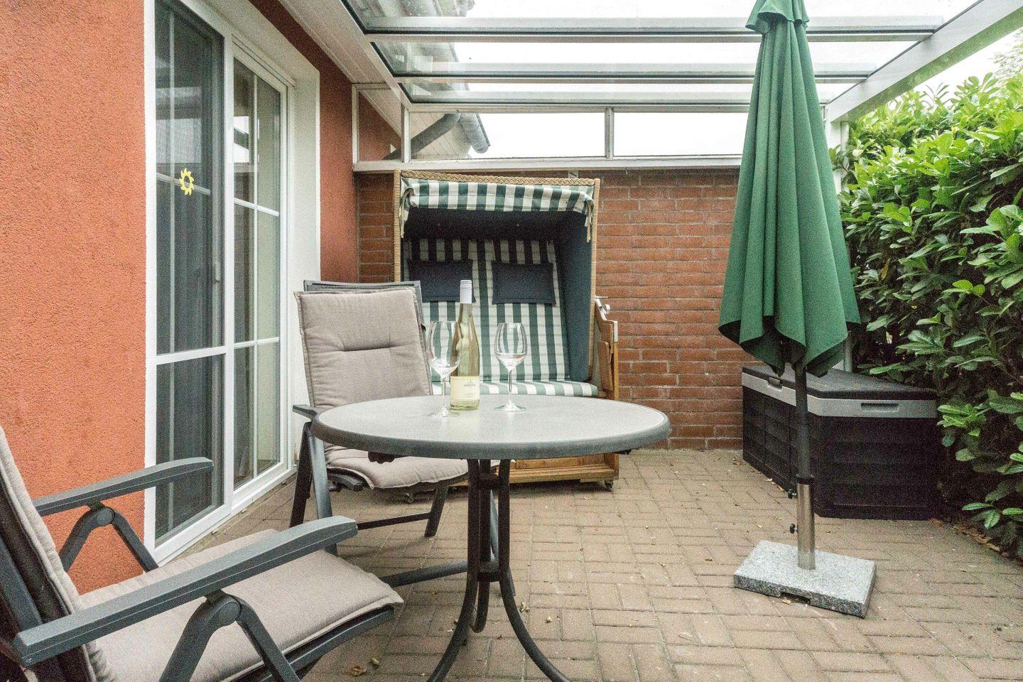 Haus Schwalbe mit überdachter Terrasse und Garten in Börgerende