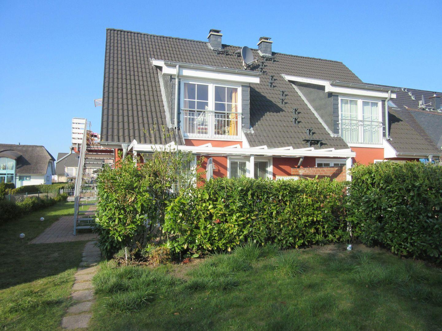 Der Garten wird von beiden Ferienwohnungen des Hauses gemeinsam genutzt. Das Grundstück einschließlich eines kostenfreien Parkplatzes ist vollständig eingezäunt.