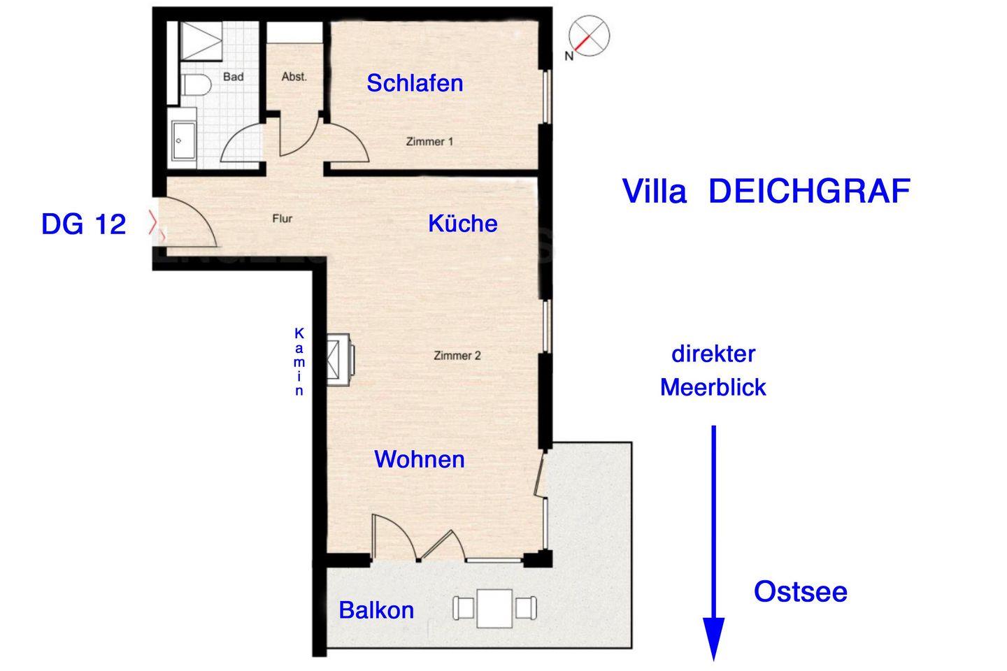 Villa Deichgraf WE 12 "Meerblick" - mit Balkon, Meerblick und Strandnähe