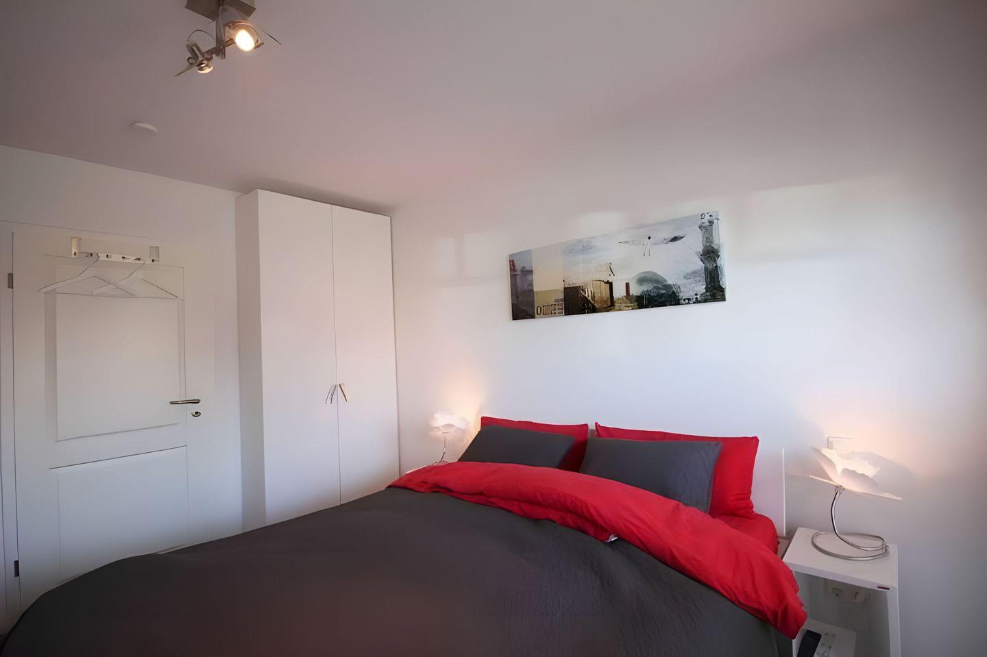 Im SCHLAFZIMMER erwartet Sie ein Doppelbett, ein Kleiderschrank und ein weiterer Flatscreen-TV.