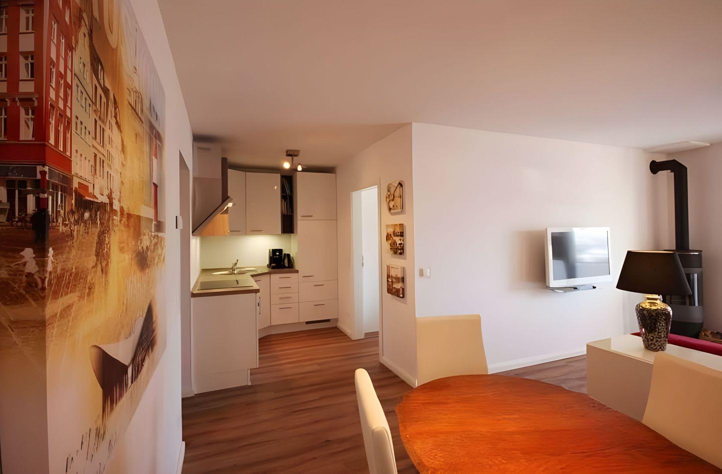 auf den hyggeligen Kamin. Die Fußbodenheizung in der Wohnung sorgt zudem für
