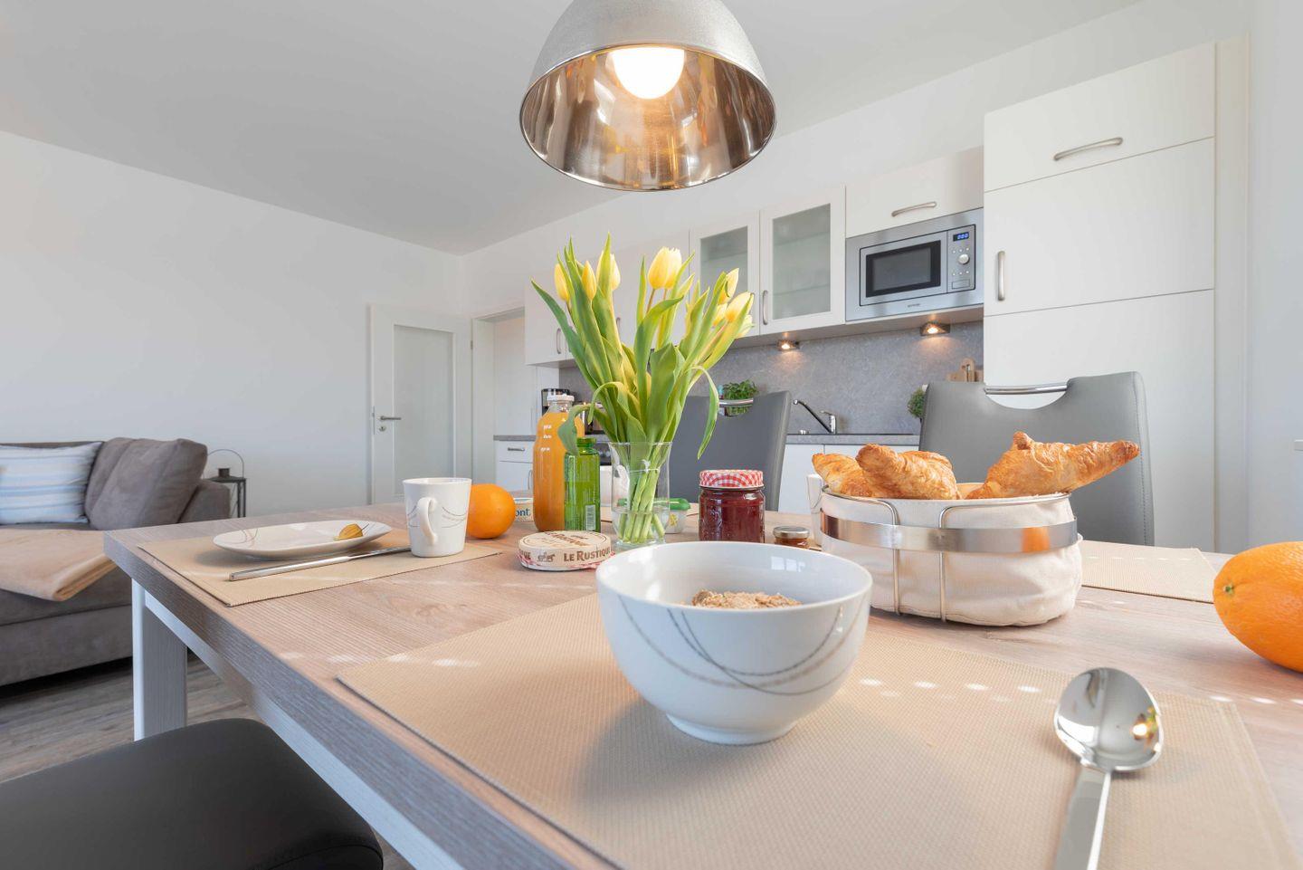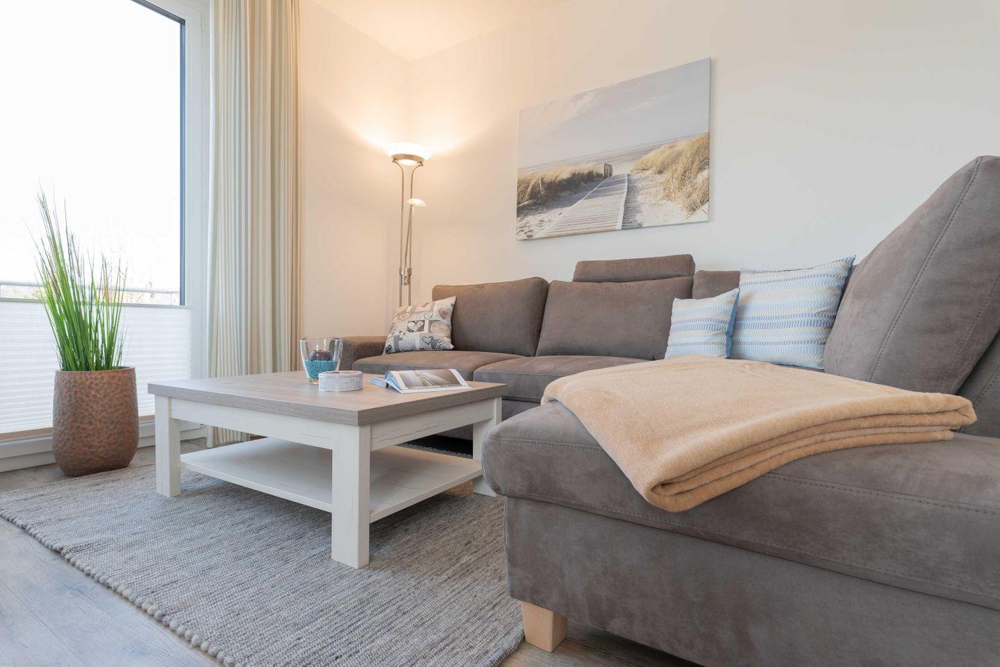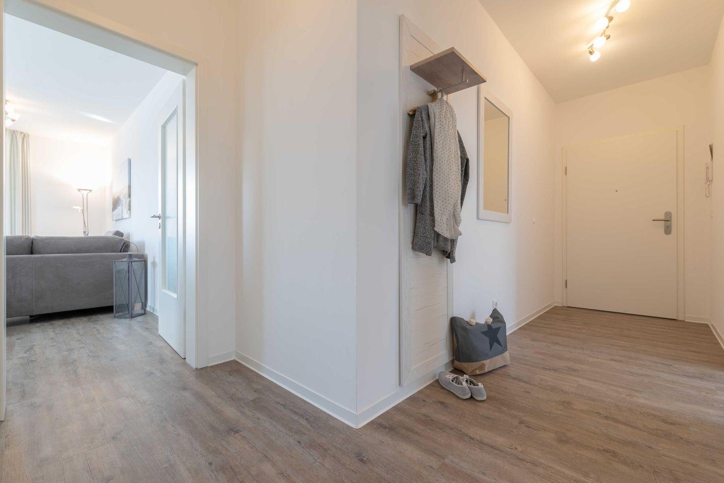 Das Apartment ist im maritimen Stil eingerichtet und verfügt über einen