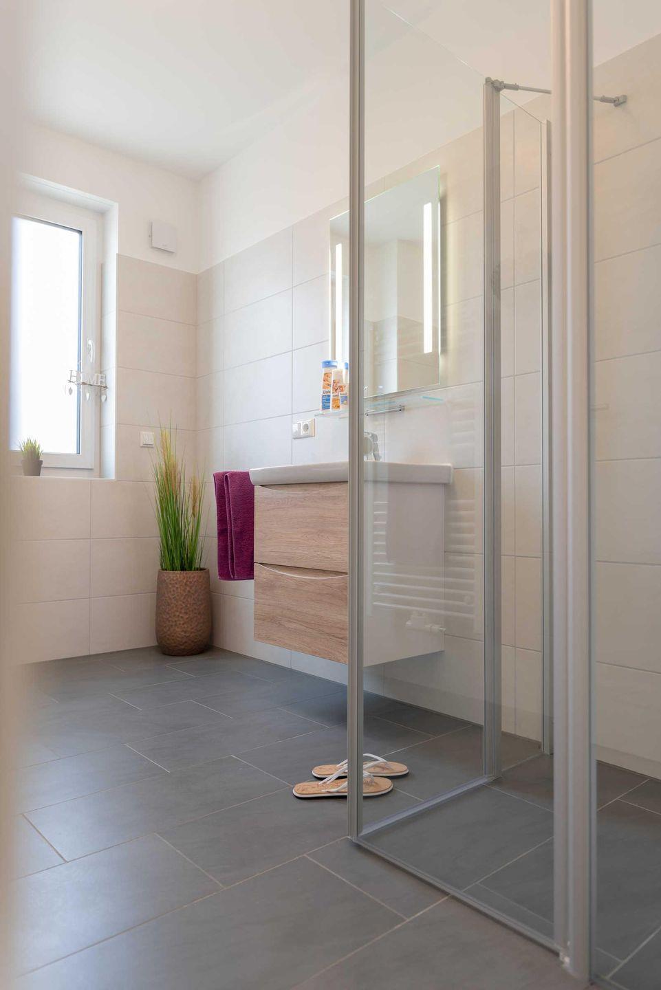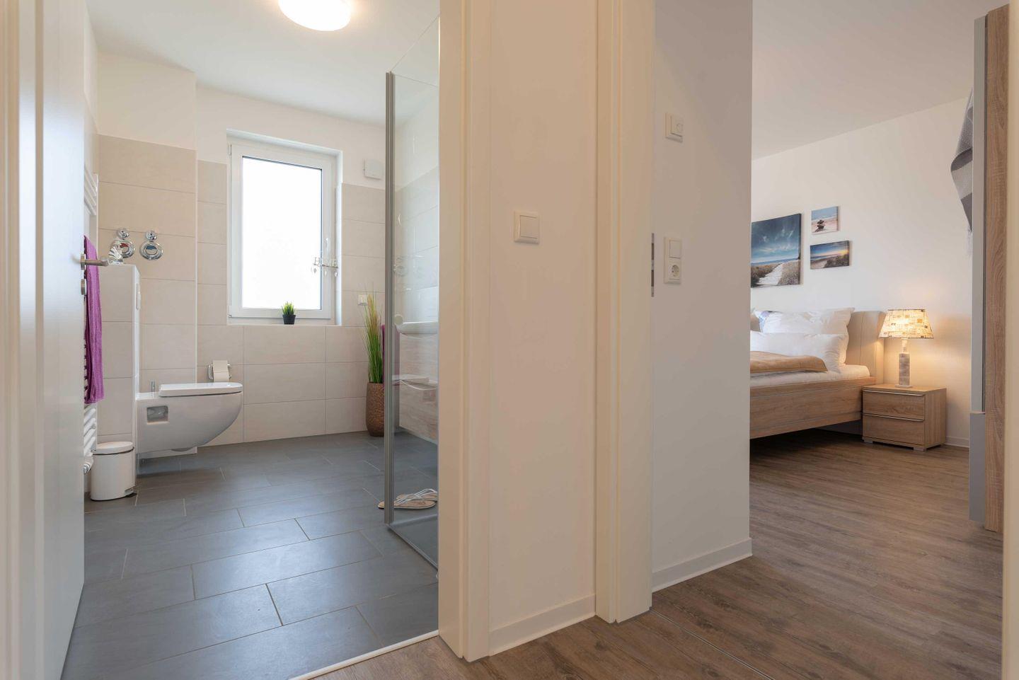 besticht mit ebenerdiger Dusche und eigenem Fenster. In den Schlafräumen sorgen