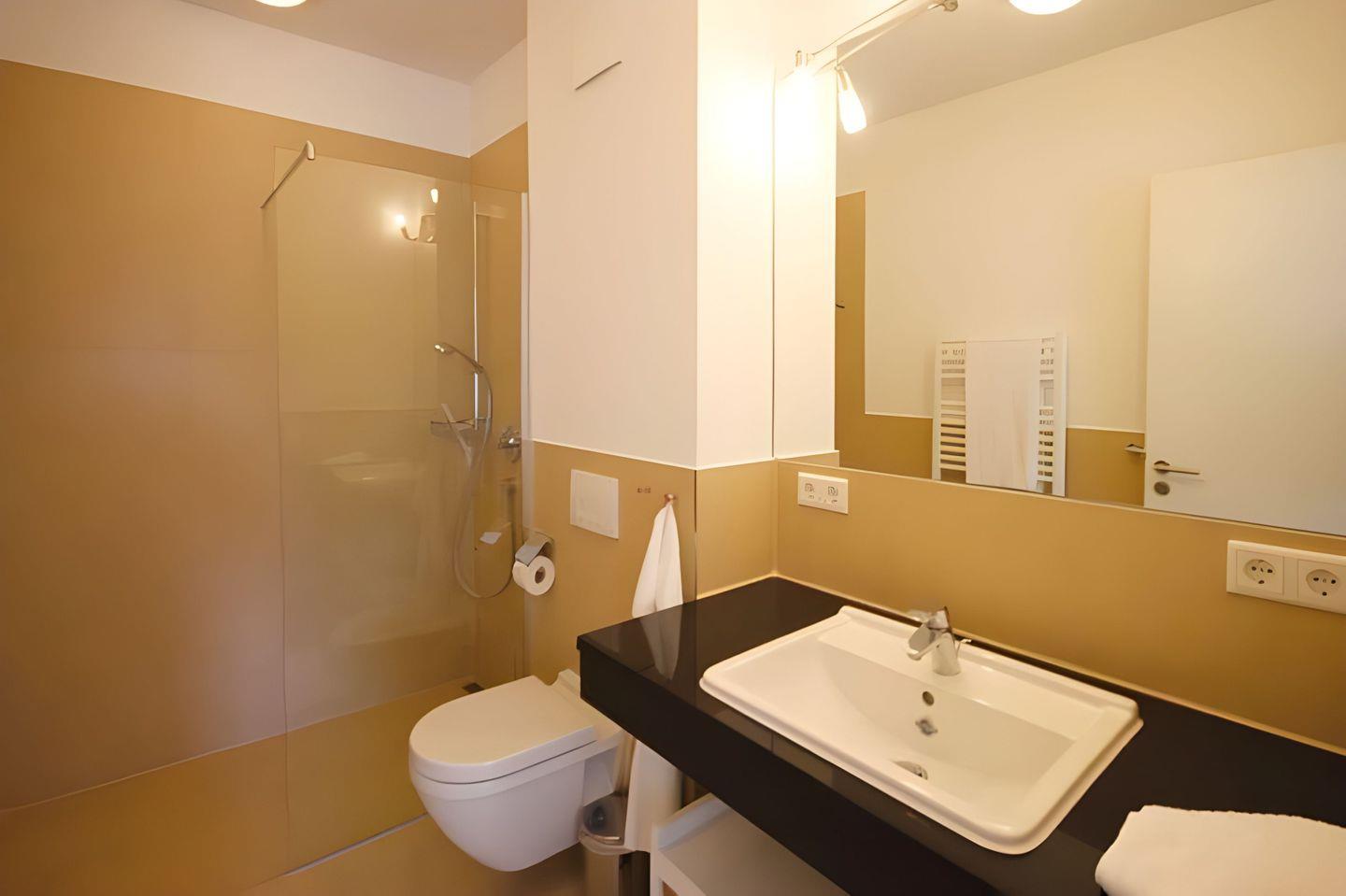 Der WOHN- UND ESSBEREICH mit Zugang zum Balkon wirkt sehr warm und die komfortable Eckcouchgarnitur lädt zum Verweilen ein. Von diesem Platz aus genießen Sie den Blick auf das gegenüberliegende TV-Gerät sowie den hyggeligen Kaminofen. Bitte beachten Sie, dass der KAMIN derzeit als Dekoration dient und NICHT NUTZBAR ist. Der Esstisch lädt zum besinnlichen Zusammensitzen ein. Sei es zu einem gemeinsamen Abendessen oder zu einem Spieleabend. Die voll ausgestattete EINBAUKÜCHE mit Geschirrspüler, Kühlschrank, inklusive Gefrierfach, Backofen, Cerankochfeld, Kaffeemaschine, Wasserkocher und Toaster bietet Ihnen die Möglichkeit, Ihre Mahlzeiten selbst zuzubereiten und anschließend auf dem BALKON, in herrlicher Nord-West-Ausrichtung gelegen, bei frischer Ostseeluft zu genießen. Auch hier stehen für Sie gemütliche Sitzmöbel bereit. Das größere SCHLAFZIMMER mit Doppelbett (getrennte Matratzen) und das kleinere Zimmer mit zwei Einzelbetten bieten Ihnen die Möglichkeit sich auf Wunsch zurückzuziehen. Von dem größeren Schlafbereich aus haben Sie direkten Zugang zum einem der DUSCHBÄDER. Beide Bäder sind ausgestattet mit Waschtisch, geräumiger ebenerdiger Dusche, Handtuchtrockner und Föhn. Für angenehme und gleichmäßige Wärme in allen Räumen der Wohnung sorgt die eingebaute Fußbodenheizung. Eine zusätzliche kleine Abstellmöglichkeit finden Sie im Eingangsbereich der Unterkunft. Außerdem besitzt diese Ferienwohnung einen TIEFGARAGENSTELLPLATZ und eine Abstellmöglichkeit für Ihre FAHRRÄDER im Objekt. Diese sind kostenfrei für Sie. Bitte beachten Sie die DURCHFAHRTSHÖHE von max. 1,90 m(!) in die Tiefgarage. Bei Überschreitung der maximalen Durchfahrtshöhe besteht die Möglichkeit auf einen kostenpflichtigen Parkplatz in unmittelbarer Nähe auszuweichen. Der im Gebäude installierte Aufzug erleichtert den Transport der mitgebrachten Koffer. Zudem stehen eine Waschmaschine und ein Trockner im separaten Hauswirtschaftsraum im Untergeschoss der Villa zu Ihrer Verfügung (gegen Gebühr/ Münzautomat). Hier noch einige HINWEISE: Es handelt sich um eine Nichtraucherwohnung. Es sind KEINE HAUSTIERE erlaubt. Das kostenfreie WLAN in der Unterkunft ist ausschließlich für die Verwendung von Social Media und den Austausch von Bildern mit Familie und Freunden gedacht. Die Nutzung zum Streamen von Filmen ist nicht vorgesehen. Wäschesets, Kinderreisebett und Kinderhochstuhl können kostenpflichtig zugebucht werden. Sichern Sie sich zusätzlich einen der begehrten STRANDKÖRBE nur ein paar Meter entfernt von den rauschenden Wellen der Ostsee (Anfang Mai - Ende August) und buchen Sie jetzt zu besonderen Konditionen (12,00 € pro Tag oder 75,00 € pro Woche).