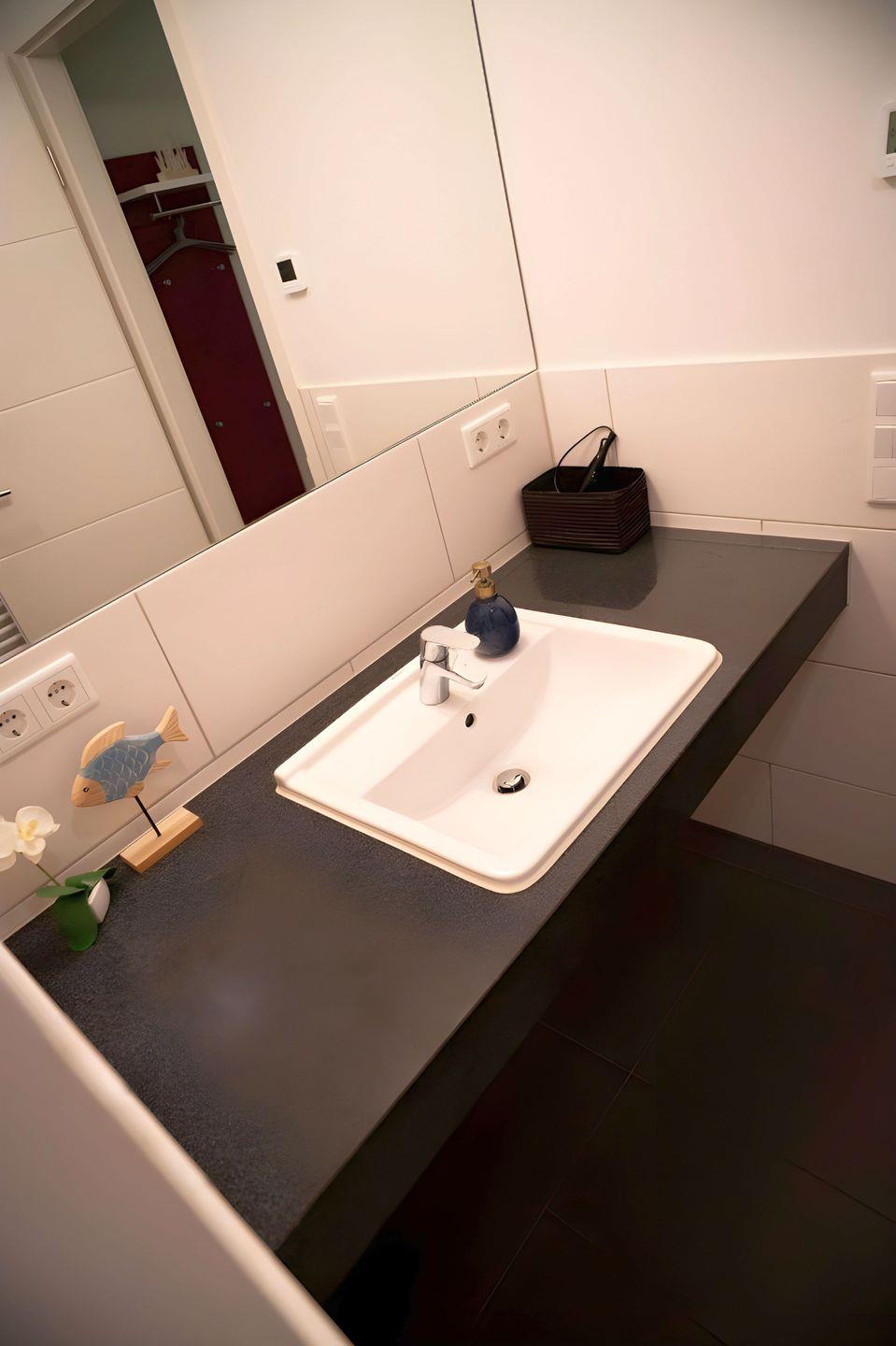 Der im Jahre 2023 neu möblierte große WOHN- UND ESSBEREICH bietet Ihnen ein bequemes Sofa mit Ottomanen, einen separaten Sessel sowie zwei kleine Beistelltische. Von hier blicken Sie direkt auf einen hyggeligen KAMINOFEN (Kaminholz wird nicht bereitgestellt). Die Couch kann schnell zum Schlafsofa für die dritte Person ausgeklappt werden. Außerdem ist ein Samsung Smart TV mit Blu-ray-/CD-/DVD-Player und integriertem Radio vorhanden. Zu Ihrer Unterhaltung finden Sie zudem eine Spielesammlung und einige Bücher. In der offenen KÜCHE finden Sie, unter anderem, ein Cerankochfeld, Backofen, Kühlschrank, Gefrierfach, Mikrowelle, Kaffeemaschine, Wasserkocher, Toaster sowie Handmixer und Pürierstab. An einem großen Holztisch mit Freischwingern aus Leder, können Sie Ihre zubereiteten Mahlzeiten genießen. Oder, bei gutem Wetter, auch auf dem Balkon. Das SCHLAFZIMMER ist mit hochwertigen Möbeln von HÜLSTA eingerichtet und besticht mit einem Doppelbett (180 x 200 cm/ getrennte Matratzen)) mit höhenverstellbarem Kopf- und Fußteil sowie einem geräumigen Kleiderschrank. Von hier aus können Sie ebenfalls den Balkon betreten und einen kleinen Blick auf die Ostsee erhaschen. Im eleganten Duschbad erwartet Sie eine bodengleiche Dusche mit Glaswand. Ein Handtuchtrockner, ein geräumiger Waschtisch mit großem Spiegel und ein Fön, gehören zur Badausstattung. Den möblierten BALKON dieser Wohnung können Sie entweder aus dem Wohnbereich oder auch aus dem Schlafzimmer betreten. Dieser ist nach Osten ausgerichtet und ideal für ein Frühstück bei Sonnenschein. Im ABSTELLRAUM finden Sie ausreichend Platz, um Ihre Koffer unterzubringen. Dort finden Sie auch Auflagen für die Balkonmöbel sowie ein Bügeleisen und Bügelbrett. Alle Räume der Unterkunft sind mit einer Fußbodenheizung ausgestattet worden. Ein PKW-STELLPLATZz steht Ihnen KOSTENFREI direkt am Objekt zur Verfügung. Außerdem erleichtert der im Gebäude installierte Aufzug den Transport der mitgebrachten Urlaubssachen in Ihr Domizil. In der Tiefgarage gibt es zudem eine Abstellmöglichkeit für Ihre FAHRRÄDER. Hier noch einige HINWEISE: Es handelt sich um eine Nichtraucherwohnung. HAUSTIERE sind NICHT erlaubt. Das kostenfreie WLAN in der Unterkunft ist ausschließlich für die Verwendung von Social Media und den Austausch von Bildern mit Familie und Freunden gedacht. Die Nutzung zum Streamen von Filmen ist nicht vorgesehen. Wäscheset, Kinderreisebett und Kinderhochstuhl können kostenpflichtig zugebucht werden. Eine Waschmaschine und ein Trockner stehen im separaten Hauswirtschaftsraum im Untergeschoss der Villa zu Ihrer Verfügung (gegen Gebühr/ Münzautomat). Sichern Sie sich einen der begehrten STRANDKÖRBE nur ein paar Meter entfernt von den rauschenden Wellen der Ostsee (Anfang Mai - Ende August) und buchen Sie jetzt zu besonderen Konditionen (12,00 € pro Tag oder 75,00 € pro Woche).