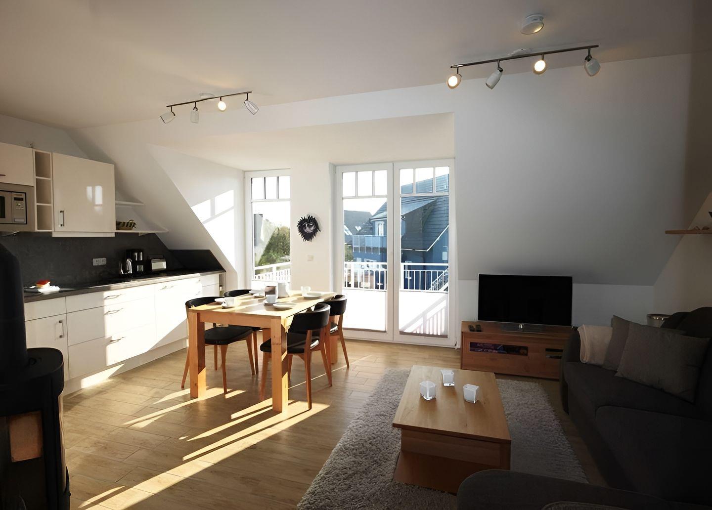 STRANDNAHE, FAMILIENFREUNDLICHE 3-RAUM-MAISONETTENWOHNUNG FÜR MAX. 4 PERSONEN, 2 SCHLAFZIMMERN, KAMIN UND 2 BALKONEN IM 1. OG