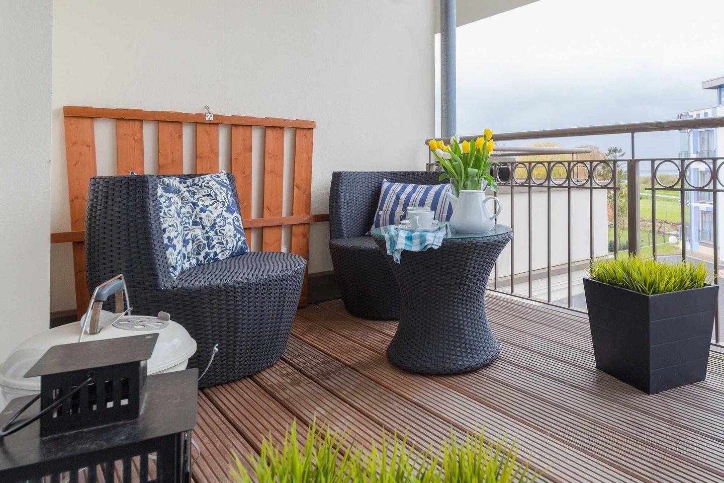 Der herrliche Balkon in Nord-Westausrichtung mit Blick auf die Ostsee ist mit