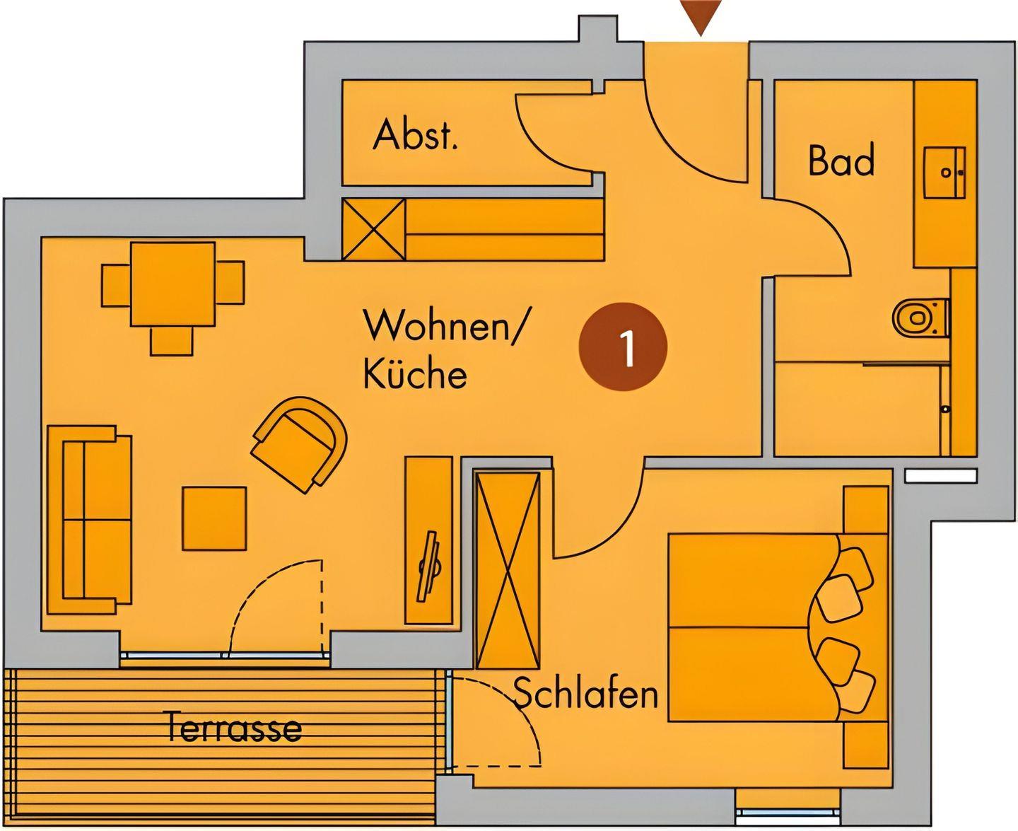 Das Herzstück des gemütlichen WOHN- UND ESSBEREICH ist die einladende Eck-Couch. Sie bietet ausgezogen Schlafmöglichkeiten für maximal zwei Erwachsene (140 cm Breite). Zur Ausstattung gehört zudem ein großer Smart-TV. Am schönen Echtholztisch mit vier Armlehnstühlen können Sie in Ruhe Ihre Mahlzeiten genießen oder eine entspannte Zeit mit der Familie bei fröhlichen Gesprächen und Spieleabenden verbringen. Auf dem herrlichen BALKON in Ost-Ausrichtung befindet sich ein weiterer Essbereich für vier Personen.