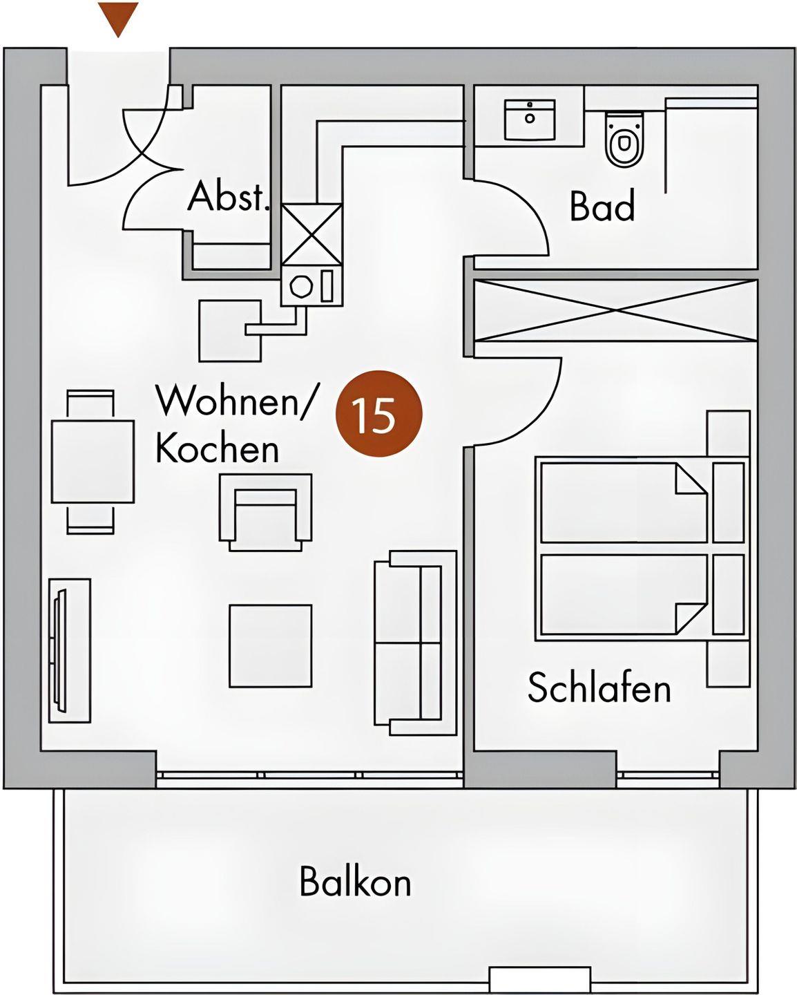 Das helle Ferienapartment ist etwa 50 qm groß, hat ein Schlafzimmer und ein