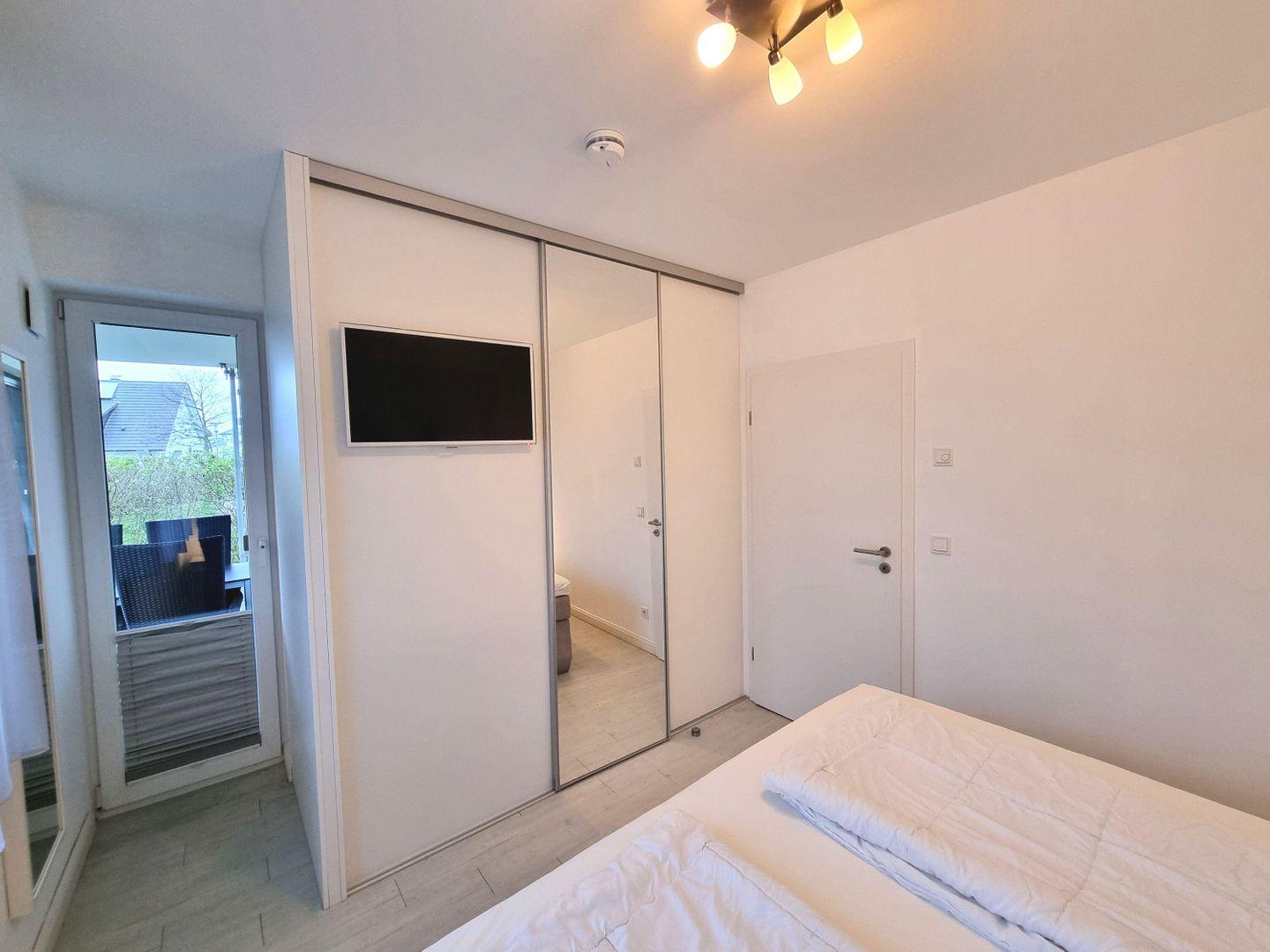 Haus Seeresidenz Seeresidenz WE 03 bietet auf ca. 59 m² eine moderne, offen gestaltete Unterkunft im Erdgeschoss mit eigener Terrasse und Gartenblick. Zur Ausstattung gehören WLAN, Kabel-TV, eine voll ausgestattete Küche mit Spülmaschine und Ceranherd, ein Kamin sowie ein kostenloser Privatparkplatz. Der Strand und das Stadtzentrum sind fußläufig erreichbar.
