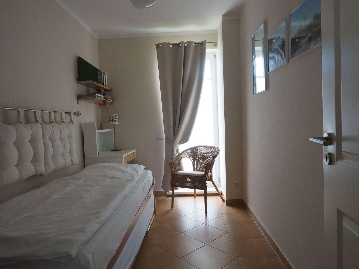 Der offen gestaltete Wohn- und Küchenbereich lädt dazu ein, gemeinsam zu kochen, zu genießen und die Seele baumeln zu lassen. Die voll ausgestattete Küche gibt Ihnen die Freiheit, Ihre Kochideen ganz nach Wunsch umzusetzen. Der helle Wohnbereich mit gemütlichem Kaminofen sorgt besonders an kühleren Tagen oder am Abend für eine behagliche Atmosphäre. Die Wohnung verfügt über zwei Schlafzimmer: eines mit einem komfortablen Doppelbett, das zweite mit einem ausziehbaren Einzelbett, das sich bei Bedarf in ein Doppelbett verwandeln lässt – ideal für Familien oder Freunde, die gemeinsam reisen.