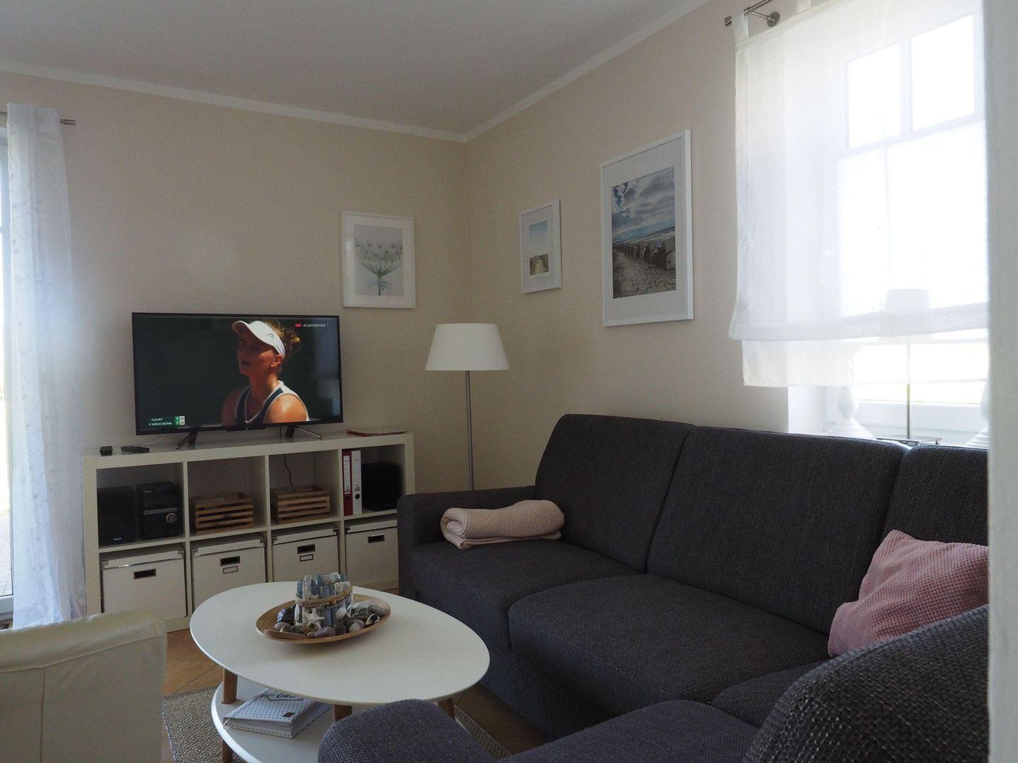 Gemütliche 60?m² Ferienwohnung für bis zu 4 Personen im Erdgeschoss – mit zwei Schlafzimmern, offener Küche, modernem Bad mit ebenerdiger Dusche und Kamin für behagliche Abende. Die sonnige Westterrasse mit Strandkorb und Gartenmöbeln lädt zum Entspannen ein. WLAN und eigener PKW-Stellplatz inklusive – ideal für einen erholsamen Urlaub in ruhiger Lage!