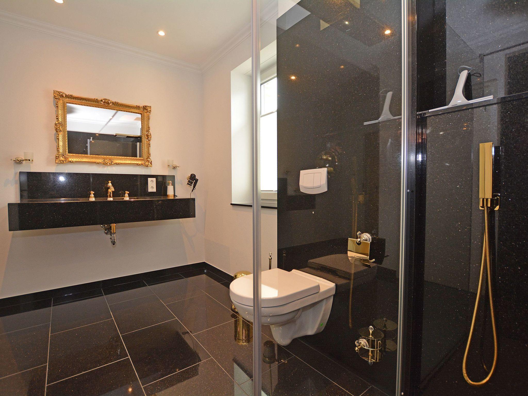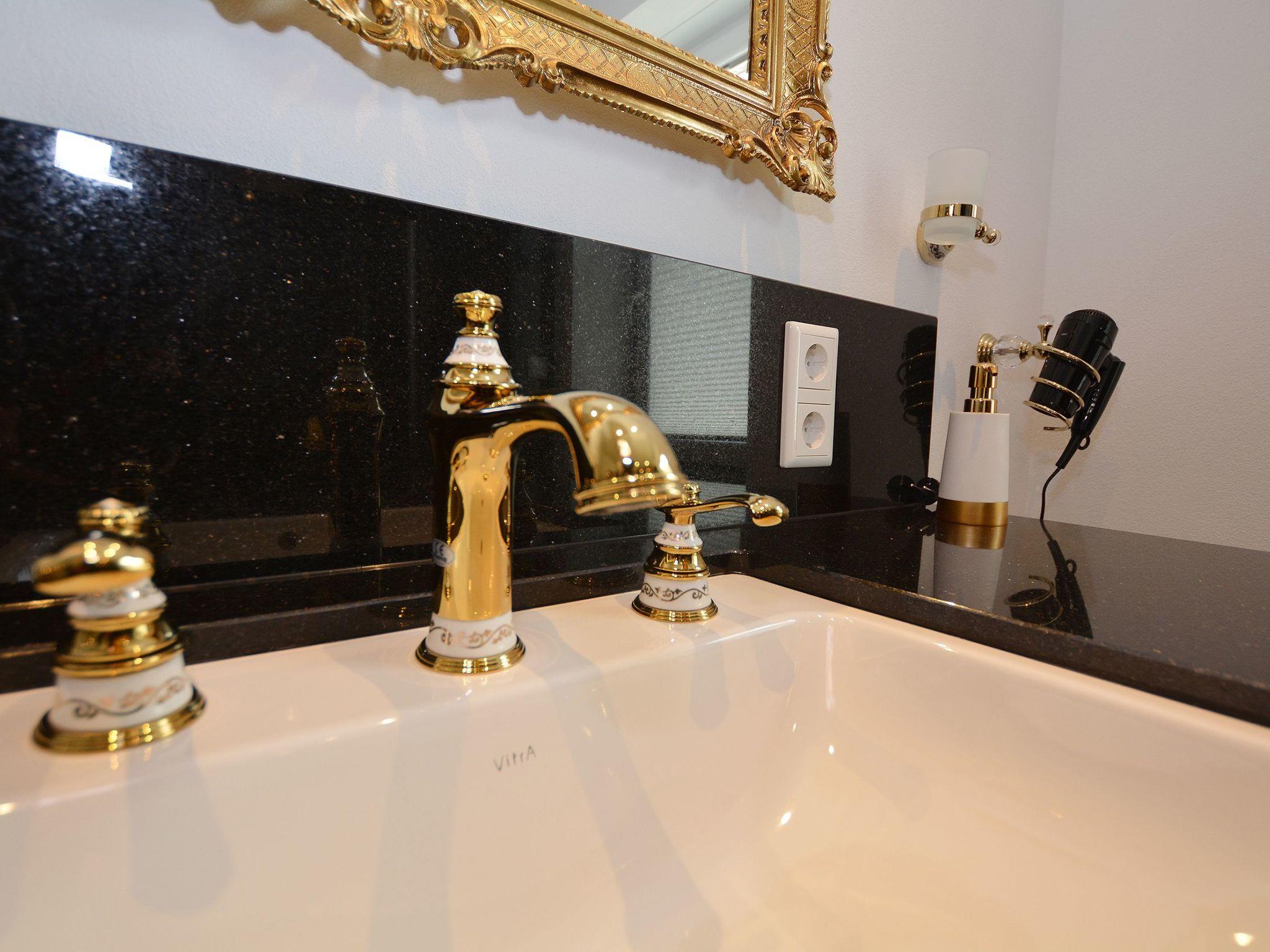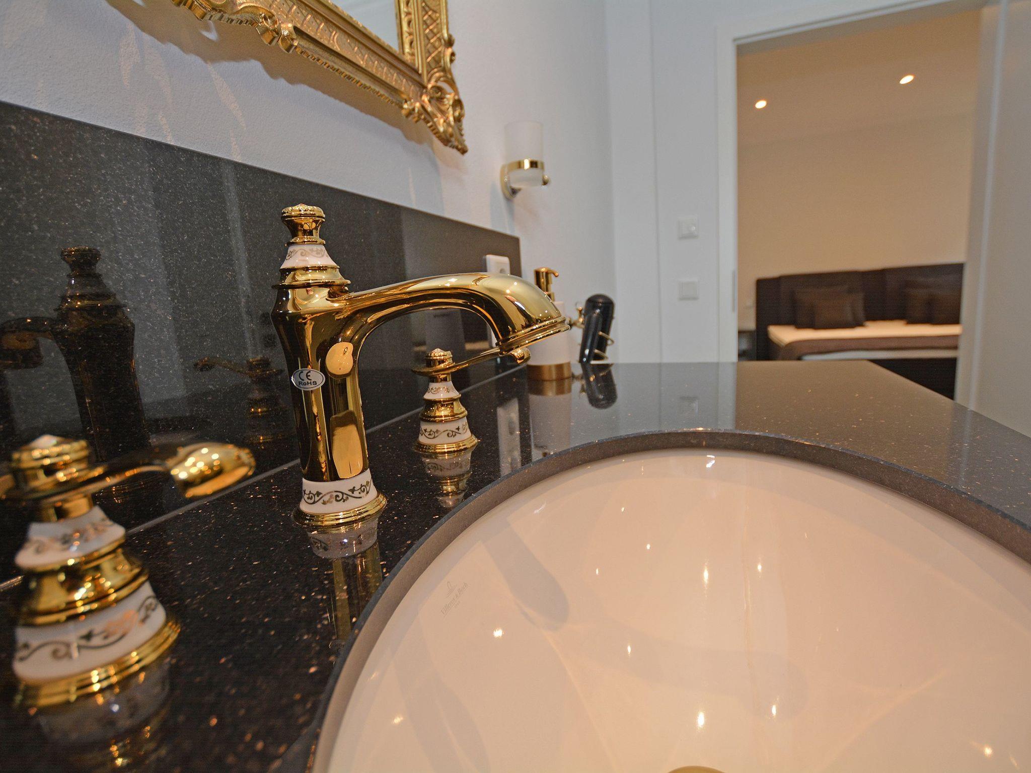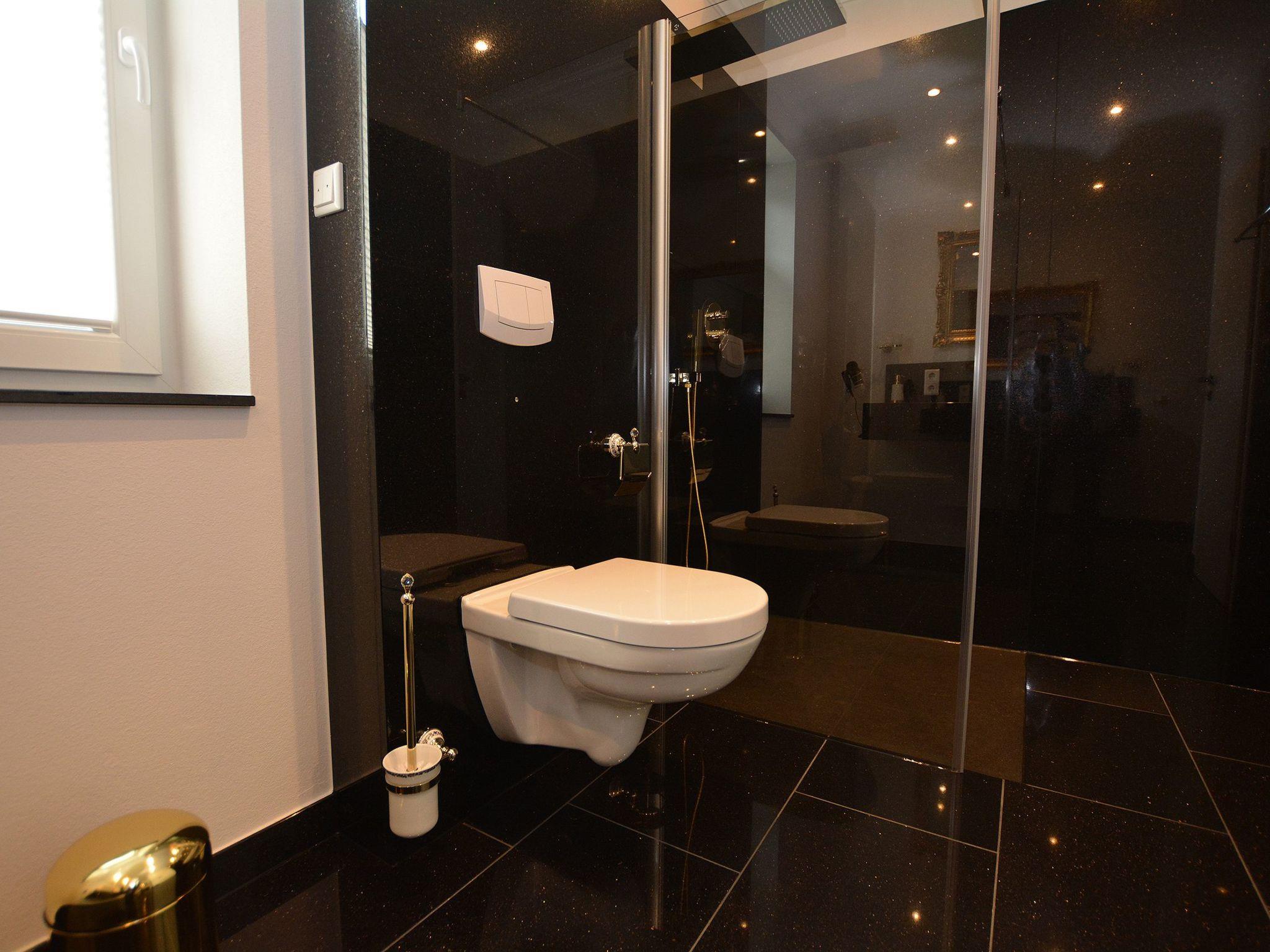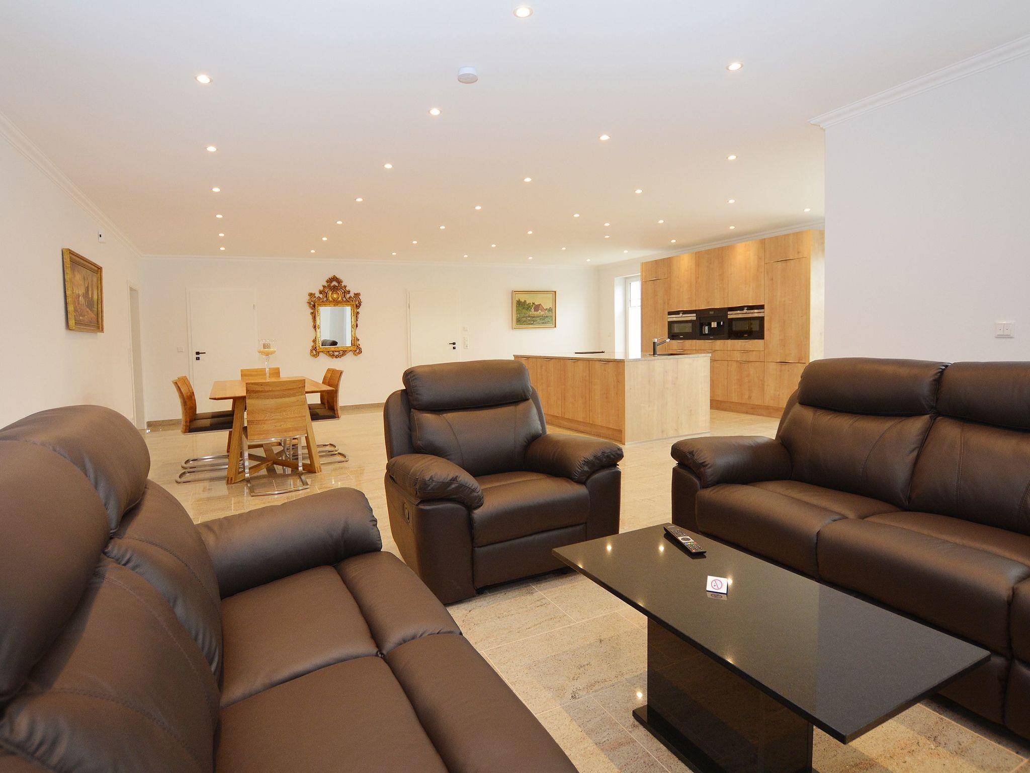 Guest WC: WC + washbasin Utility room: Washing machine + tumble dryer Iron + ironing board Travel cot + baby high chair stored there Office room: Office cupboards and table Internet access Sofa bed Hallway/ entrance: Cloakroom with mirror Terrace/ garden: Furnished and paved terrace with fenced garden Highlights of the holiday flat: 1. All rooms are laid with high-quality natural stone 2. entire flat has underfloor heating, electric external blinds and internal pleated blinds 3. all bedrooms and living room have their own television with internet access 4. entire flat is elegantly and ultra-modernly furnished 5. spacious and light-flooded rooms 6. furnished and paved terrace with its own fenced garden 7. decalcification system