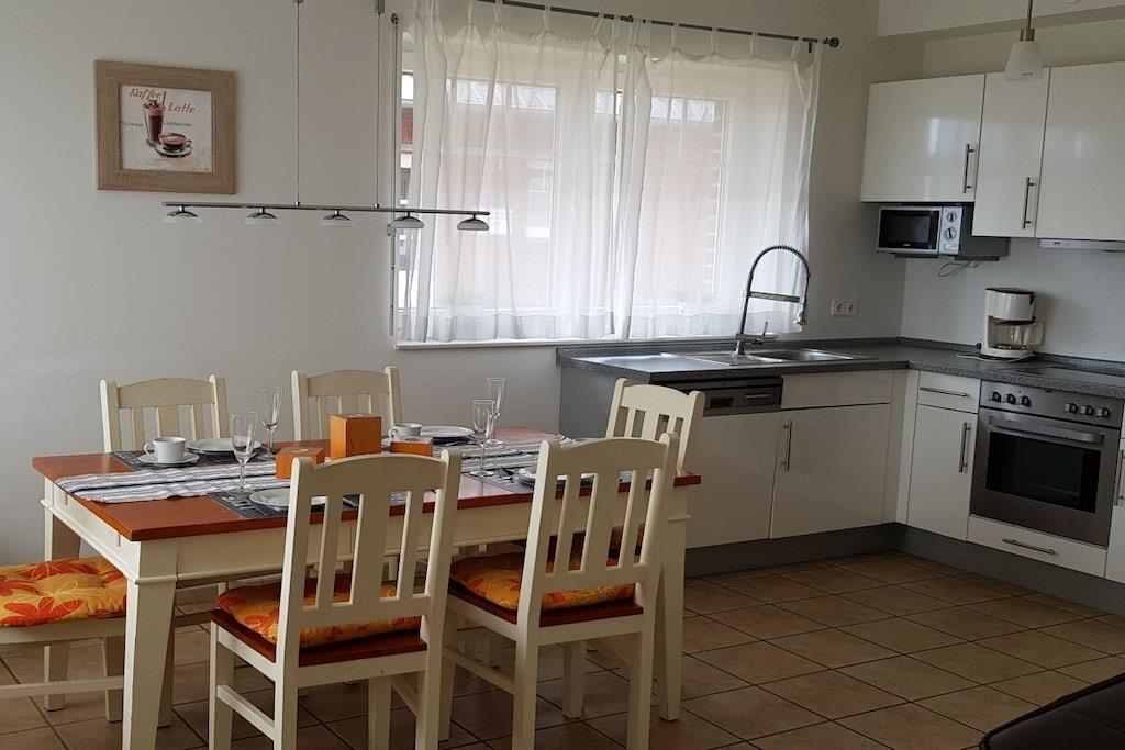 Stueetage: (Gæsteophold Stueetage(Internetadgang, Førstehjælp, vaskemaskine, varme, parkering, strygebræt, strygejern, Vaskeripakke mod et gebyr), entre, Stue(fjernsynsstue, bibliotek, enkeltsovesofa, radio), Køkken(kakkelovn, komfur, ovn, opvaskemaskine , køleskab), soveværelse(dobbeltseng), soveværelse(dobbeltseng), badeværelse(bruser, Håndklæder inkl.), badeværelse(toilet, bruser)) Sidebygning: (balkon eller terrasse, have(Græsplæne, solstole))