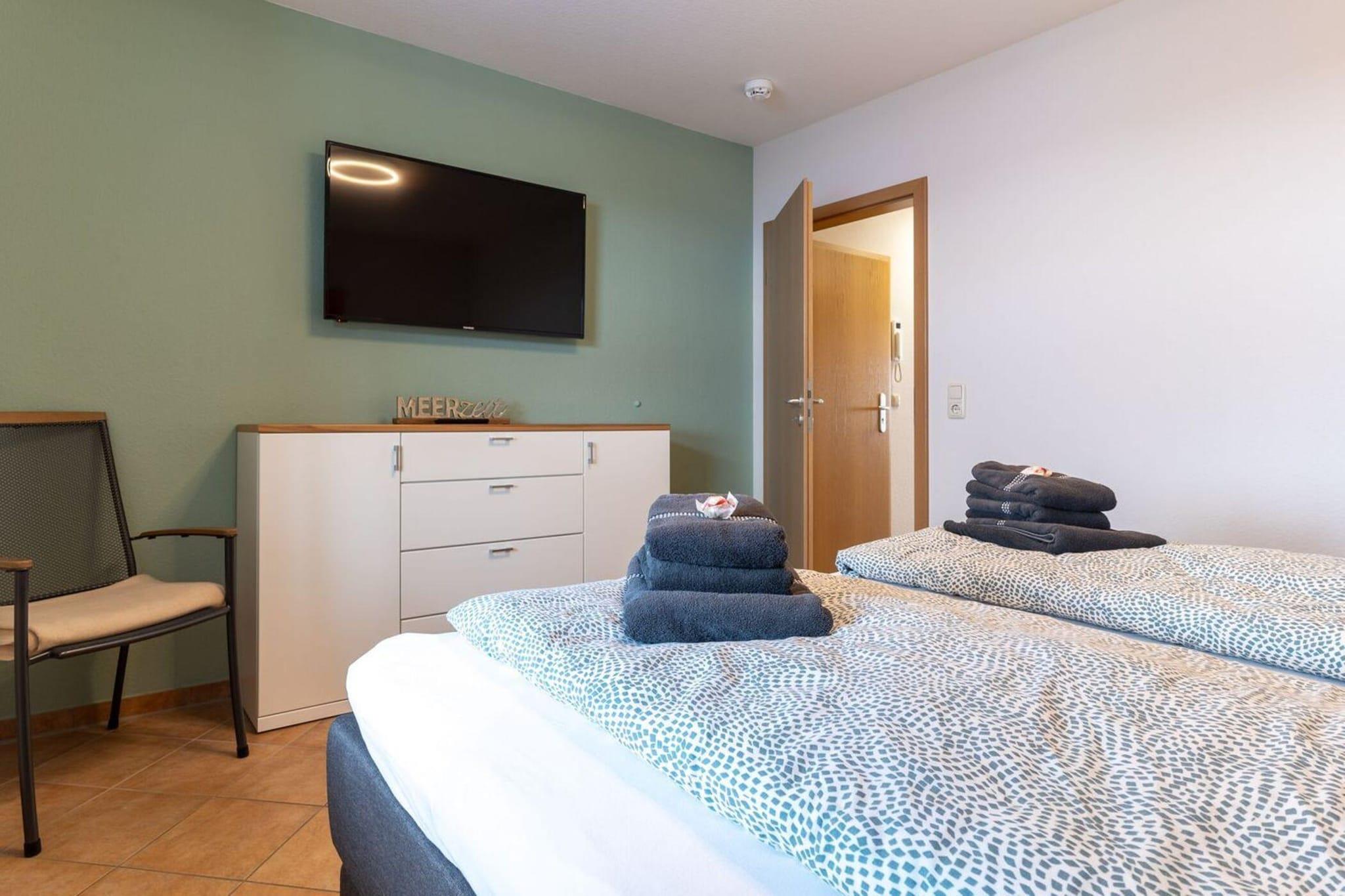 Ferielejligheden ligger helt i top, direkte ved Büsum havn. Bygningen har en underjordisk parkeringsplads med en privat parkeringsplads til hver lejlighed. En elevator bringer dig til 3. sal, hvor ferielejligheden ligger. Lejligheden har et rummeligt brusebadeværelse med gulvafløb, toilet, håndklædevarmer og som resten af lejligheden gulvvarme. På forsiden af huset er opholds-/spisestuen med et fuldt udstyret køkken, et spisebord med 4 stole og et komfortabelt sofahjørne og et fladskærms-tv (kabel-tv). Der er også et lille stereoanlæg og en dvd-afspiller til din rådighed. Terrassedøren fører til den rummelige, møblerede altan, hvorfra man har en fantastisk udsigt over Büsum havn og Vesterhavet. Højdepunkter inkluderet: Wi-Fi, alle forbrugsafhængige energiomkostninger Büsum er en populær nordsøkystby i Slesvig-Holsten og er kendt for sin maritime charme, havn og Vadehavet. Det familievenlige feriested byder på en blanding af afslapning, natur og aktivitet – ideelt for strandelskere, vadehavets vandrere og dem, der nyder frisk luft i Nordsøen.