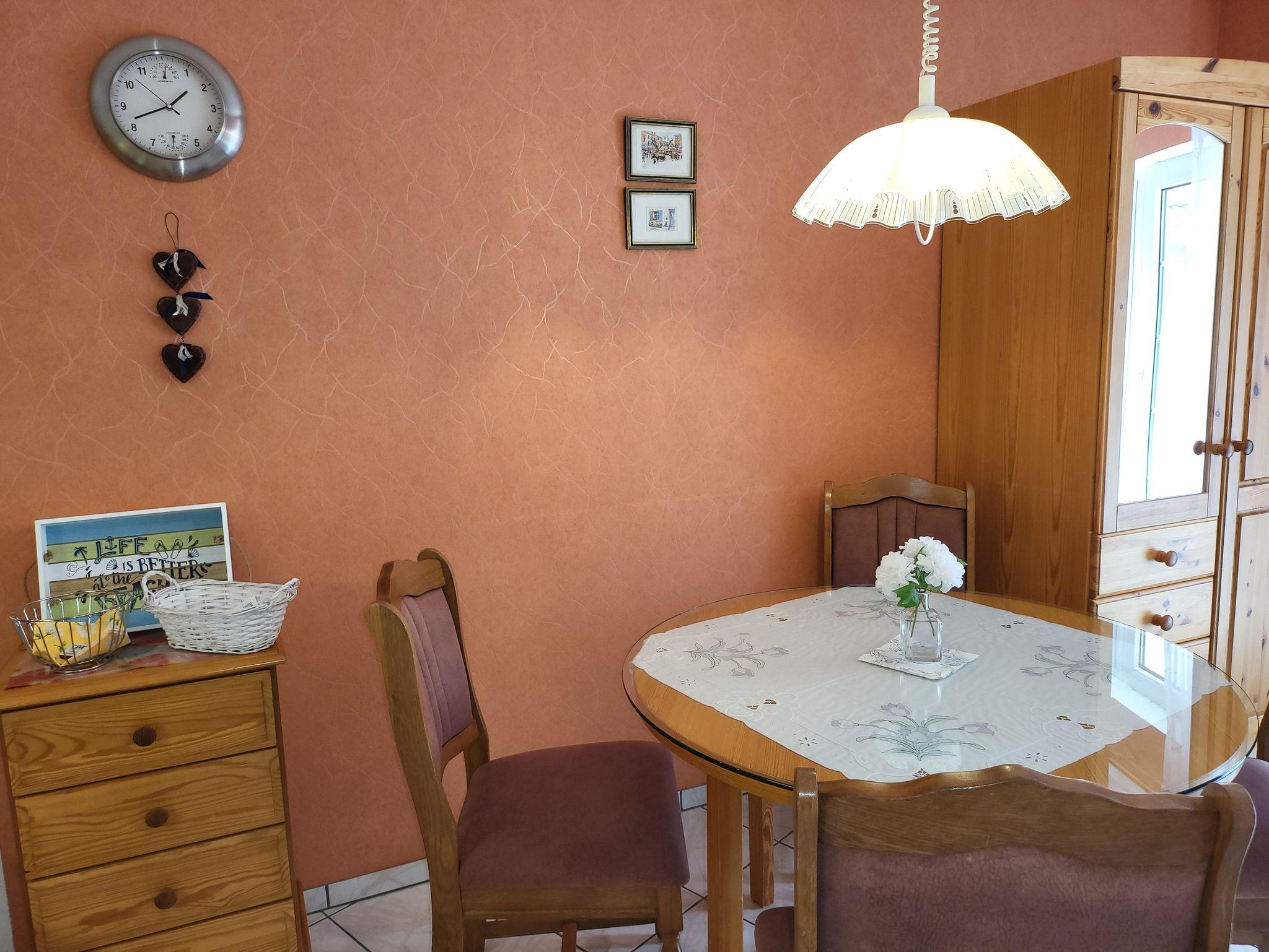 Zum Grünstrand und der Familienlagune Perlebucht sind es ca. 5-8 Gehminuten. Die Fußgängerzone mit vielen Einkaufsmöglichkeiten und Gaststätten sowie das Ärztezentrum, dem Piratenmeer Erlebnisbad sind in 20-25 Minuten erreichbar. Bäcker bieten morgens Einkaufsmöglichkeiten in der Nähe.