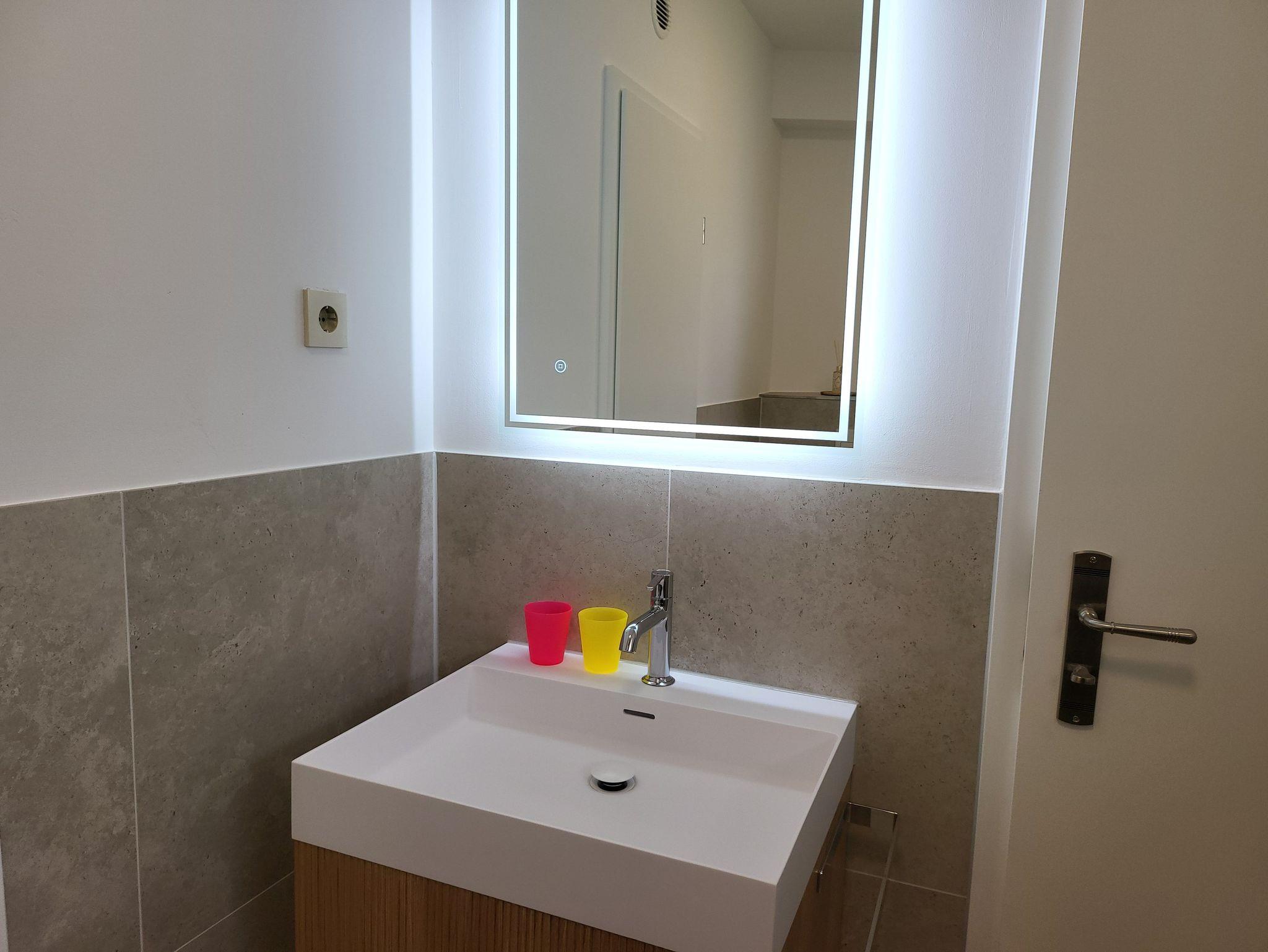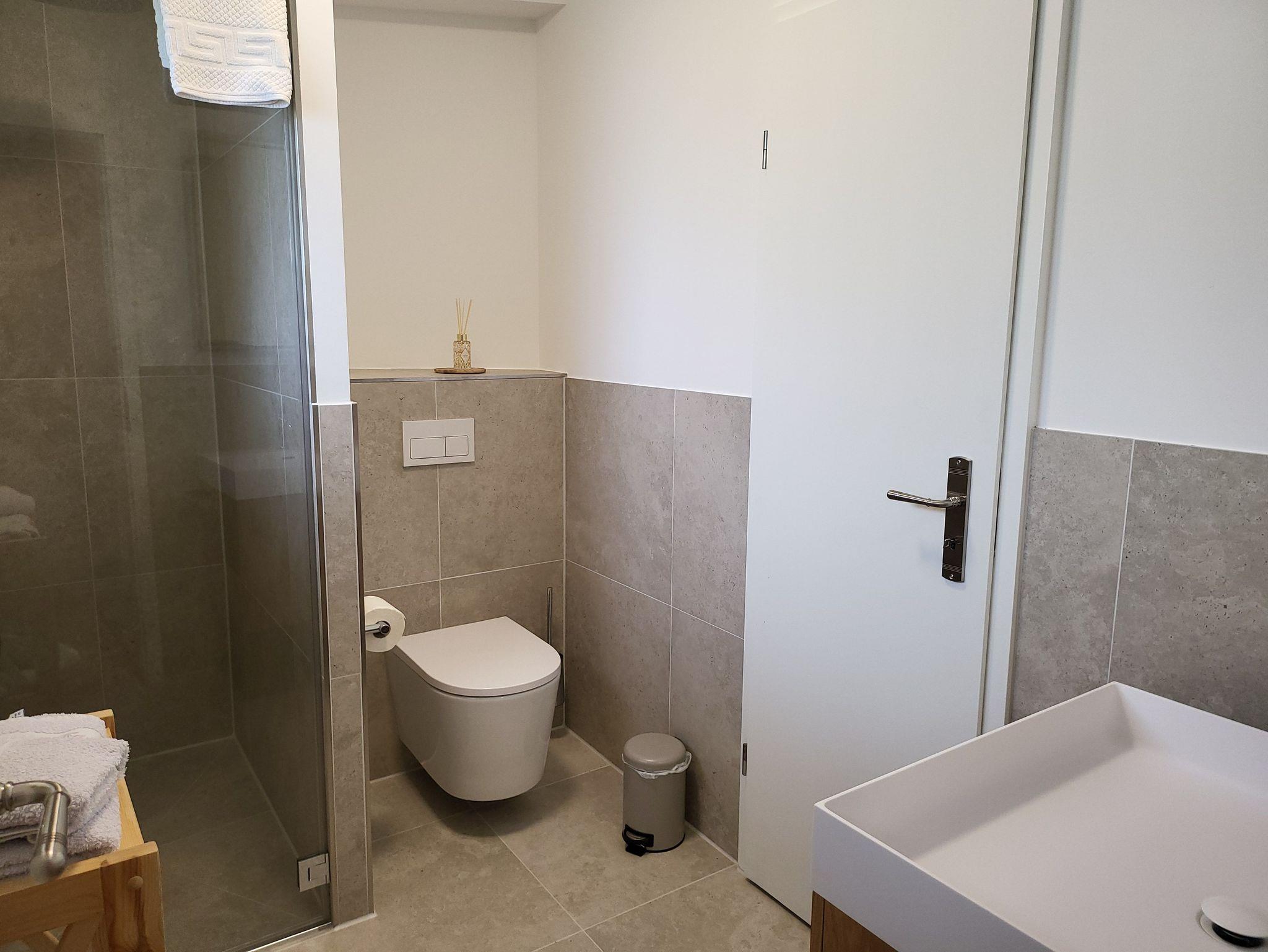 • Tageslichtbad mit Dusche, Waschbecken und WC.
