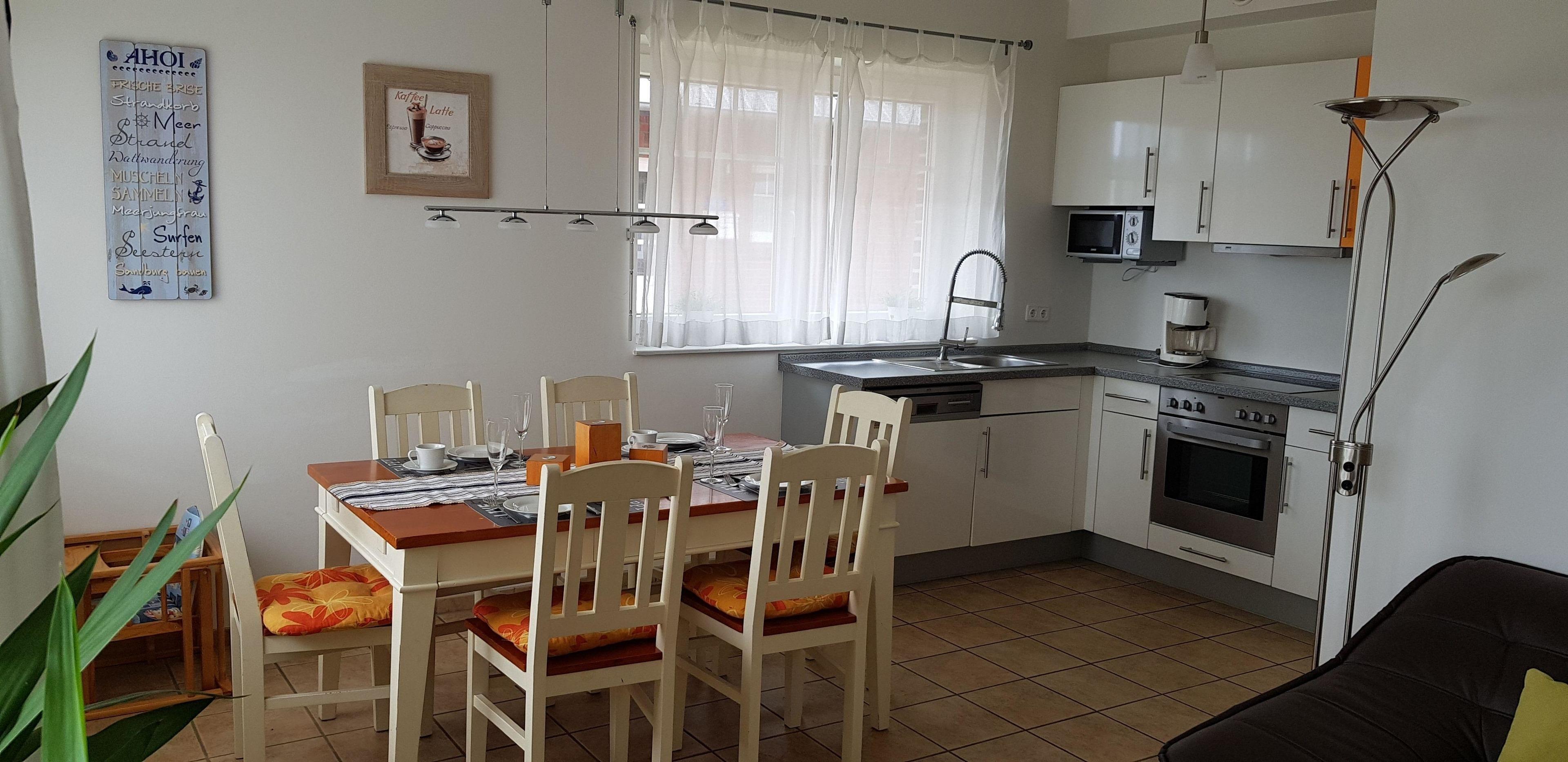 Ein kombinierter Wohn- und Essbereich mit Fernseher, CD-Player. 3 Schlafräume, Waschmaschine und Wäschetrockner, Wlan, Terrasse, Nichtraucher, Hund nicht erlaubt.