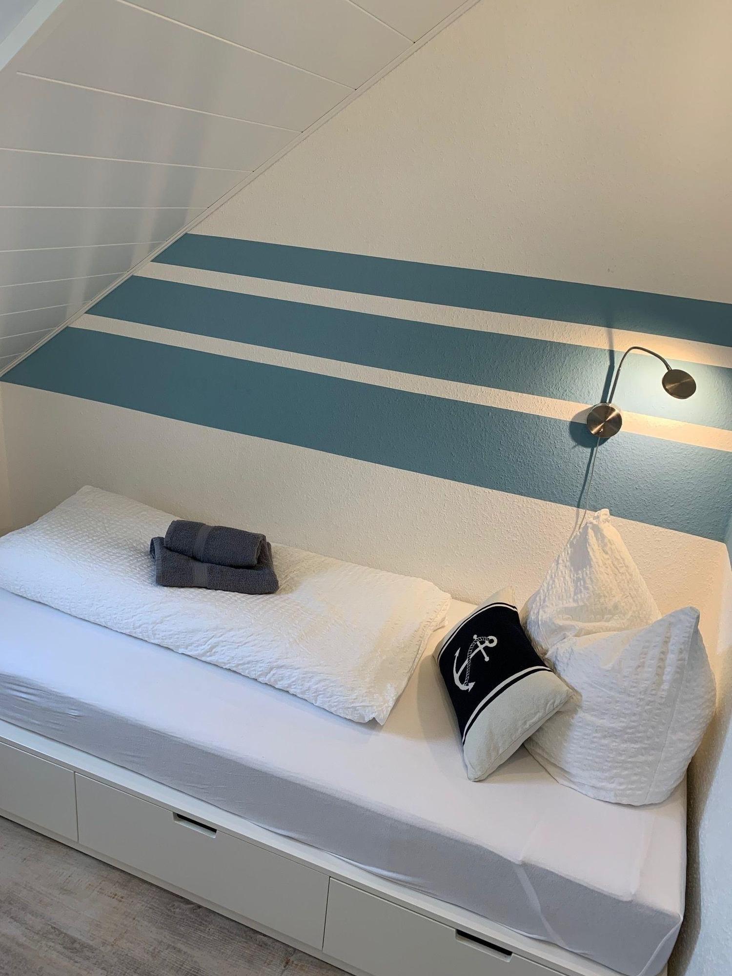 Die Ferienwohnung "Amrum" verfügt über einen Wohnraum mit vollständig ausgestatteter Küchenzeile, 2 separate Schlafzimmer (Doppelbett + Kinder Gitterbett / 2 Einzelbetten), Duschbad sowie einen Balkon.