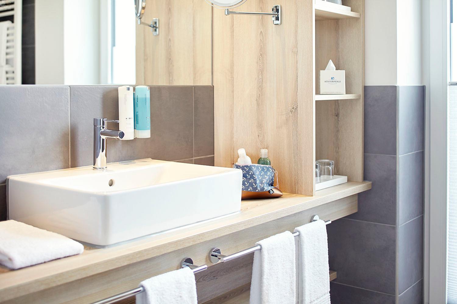 Komfortfaciliteter på badeværelset (hårtørrer, shampoo, hårbalsam, håndsæbe og brusegel)