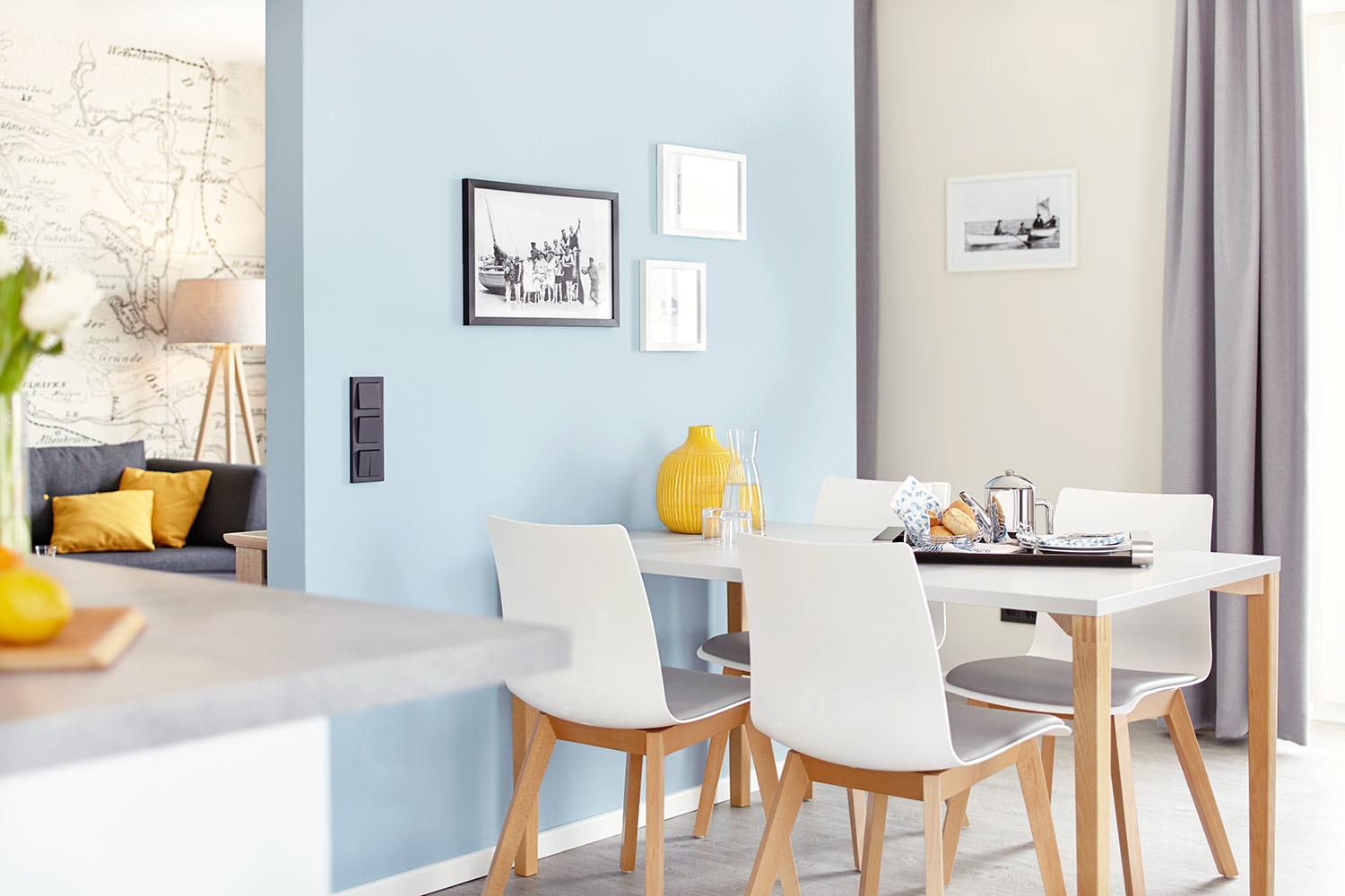 Die zwischen 62 und 84,5 m² großen Ferienwohnungen bieten Platz für 2 bis 4 Personen mit einem oder zwei Schlafzimmern. Herzstück ist jeweils ein großzügiger Wohnraum mit Wohnzimmer und offener Küche sowie einem gemütlichen Essbereich. Auf Balkon oder Terrasse können Sie die frische Seeluft mit und ohne Meerblick genießen.