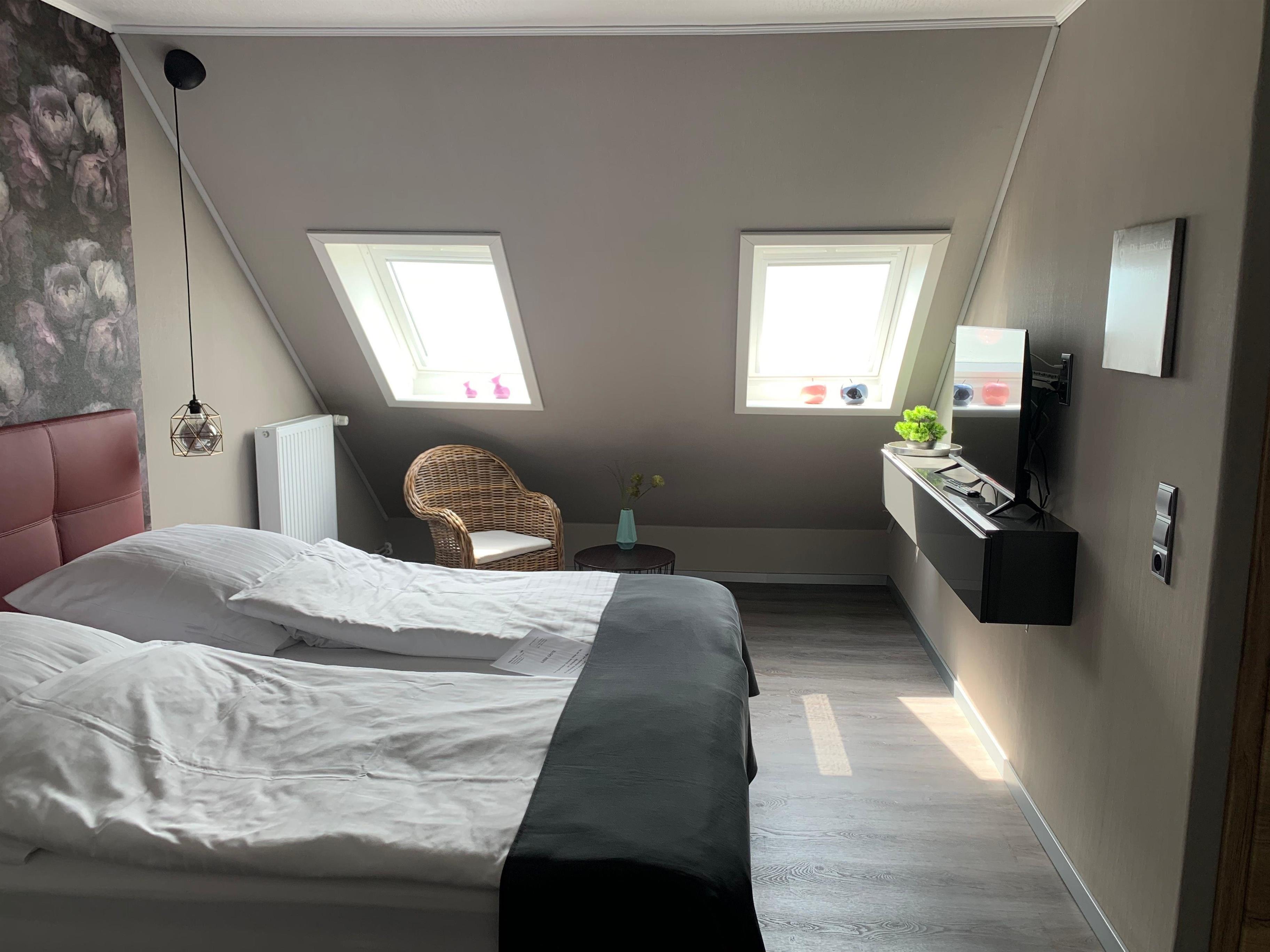 Das Schlafzimmer erreichen Sie über eine Treppe aus dem Wohnbereich im Obergeschoß. Hier finden Sie ein sehr hochwertiges Leder Boxspringbett für einen geruhsamen Schlaf. Vom Schlafzimmer ausgehend gehts in ein zweites separates WC. Zur Ausstattung gehören 2 Smart TV. DieWohnung lässt keine Wünsche offen.