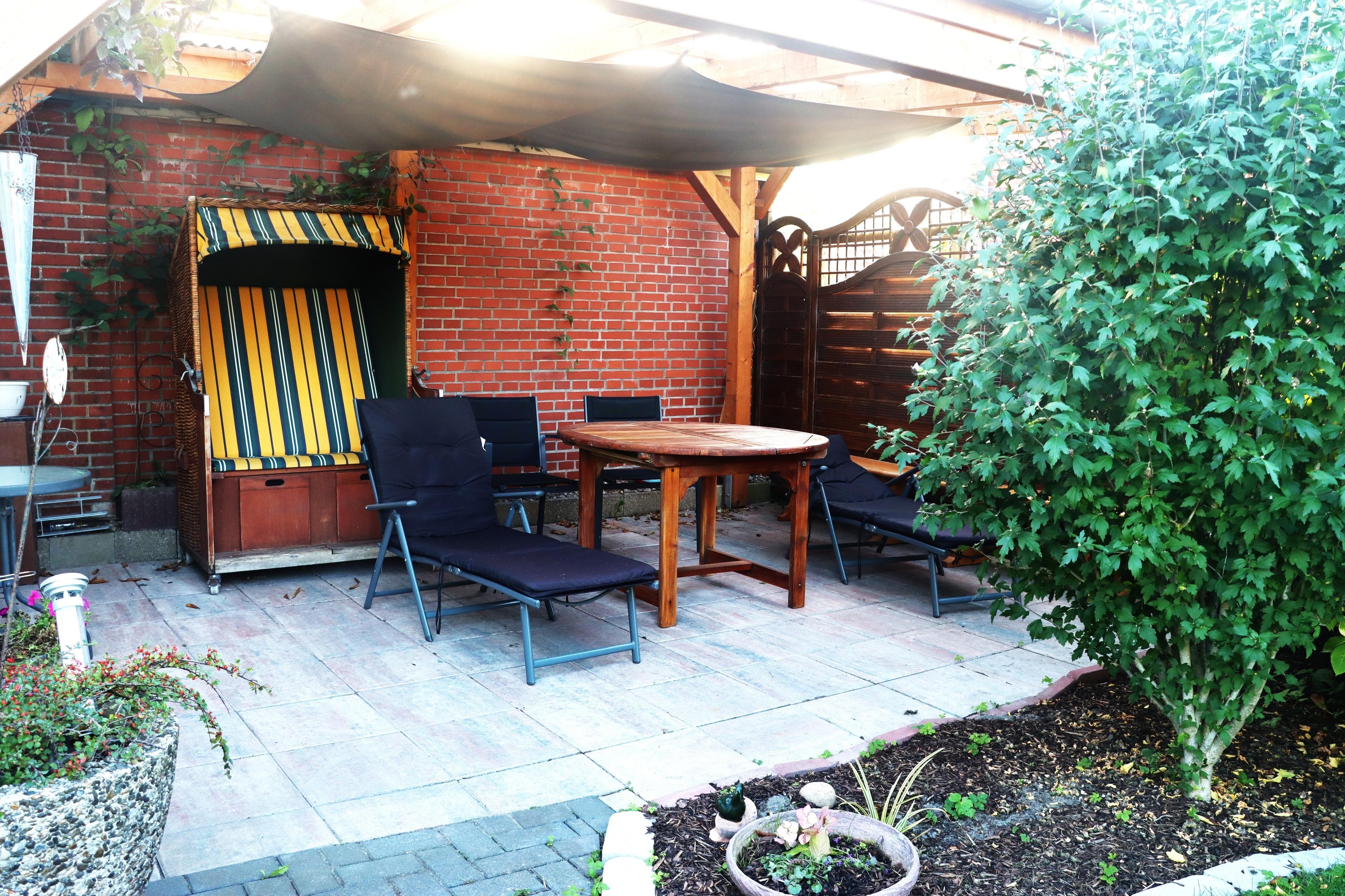 Genießen Sie Ihre Ferien in vollen Zügen, bei schönem Wetter auch gerne draußen auf der Terrasse. In der gut ausgestatteten Küche finden Sie neben einem Kühlschrank auch eine Mikrowelle und einen Backofen.