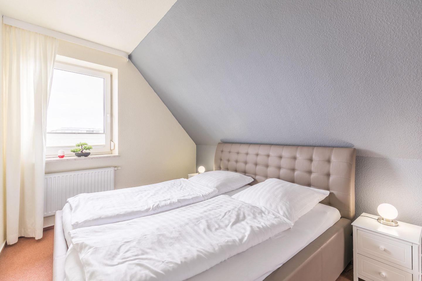Diese gepflegte Maisonettewohnung im Theodor-Storm-Haus bietet auf ca. 70?m² Platz für bis zu 5 Personen – ideal für Familien oder kleine Gruppen. Die Wohnung verfügt über drei separate Schlafzimmer: zwei mit Einzelbetten und eines mit einem Doppelbett.