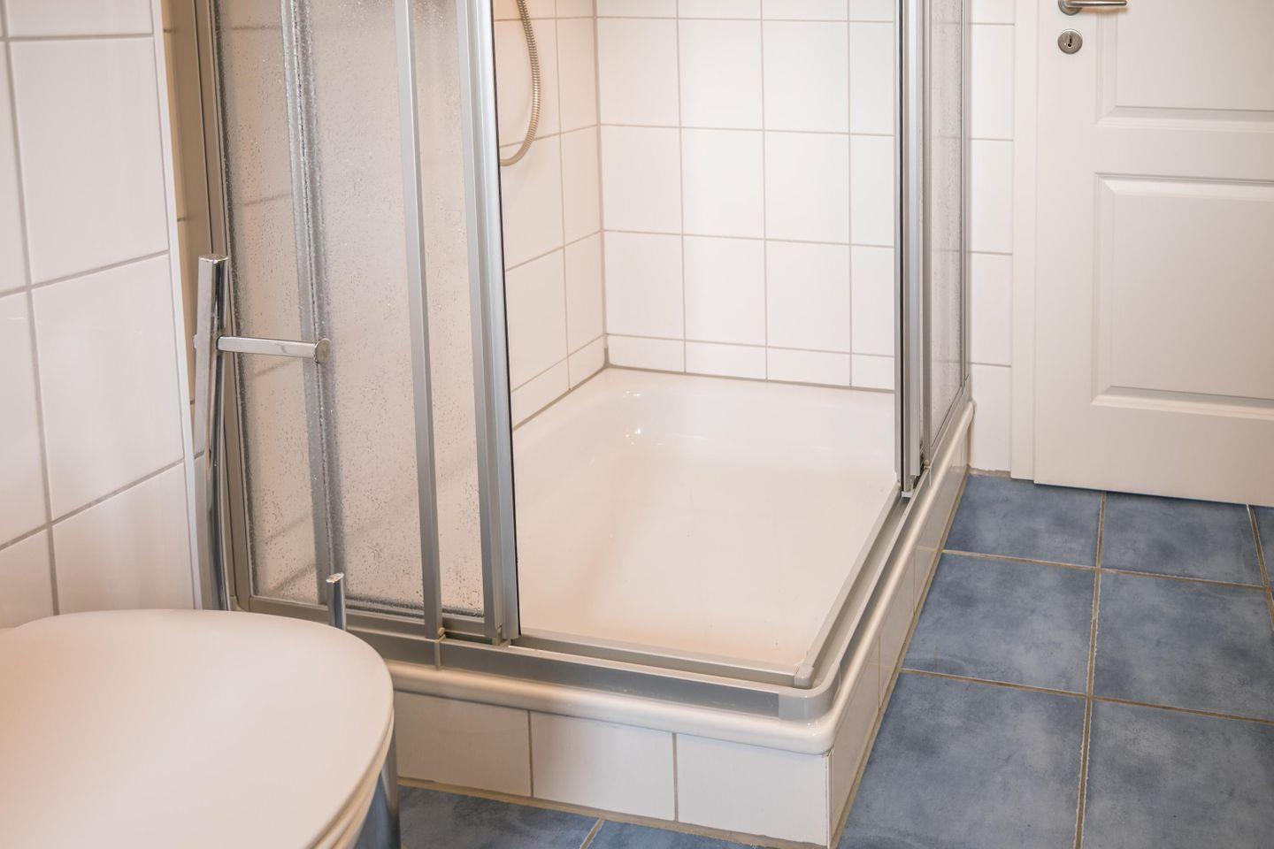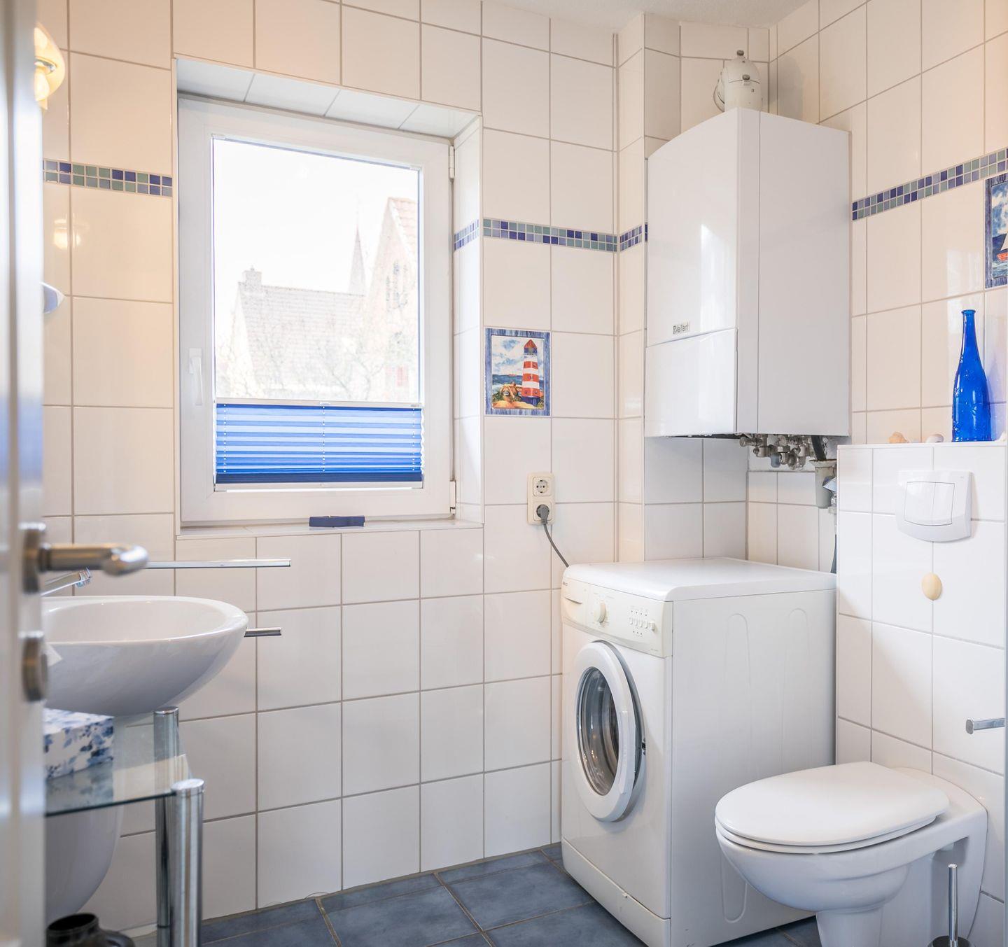 Dusche, WC, Handtuchwärmer, Fußbodenheizung, Ablageflächen, Waschmaschine