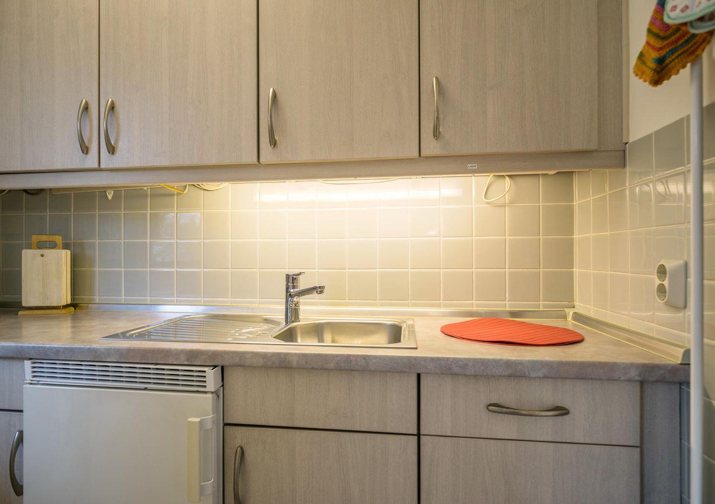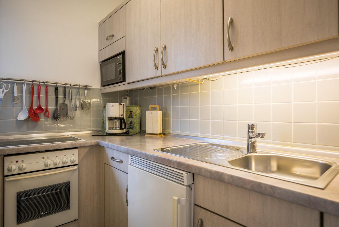 Einbauküche, Fenster, Backofen, Geschirrspüler, Mikrowelle, Wasserkocher, Toaster Kühlschrank mit Gefrierfach, Kaffeemaschine