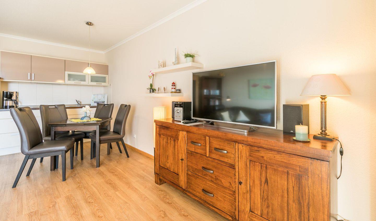 Ledercouch und TV-Ledersessel, Essgruppe, Flachbild-TV, DVD-Player, Kommode, Südbalkon, Meerblick, Hafenblick, elektr. Aussenrollladen