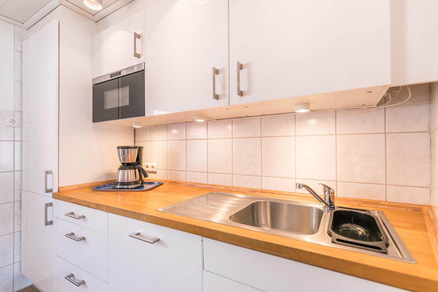 Einbauküche, Backofen, Geschirrspüler, Kühlschrank, Kaffeemaschine, Wasserkocher, Eierkocher, Toaster