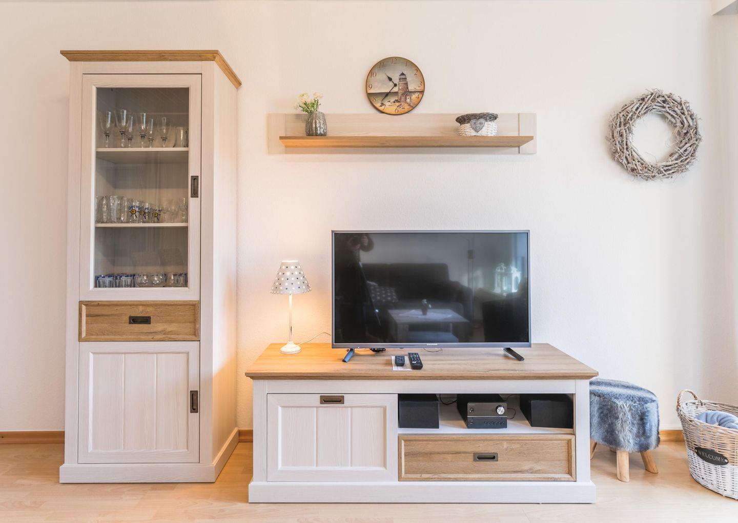Komfort-Schlafsofa, Relax Sessel, Flachbild-Kabel-TV, Radio, CD-Player, Esstisch, 4 Stühle, Terrasse, Gartenmöbel