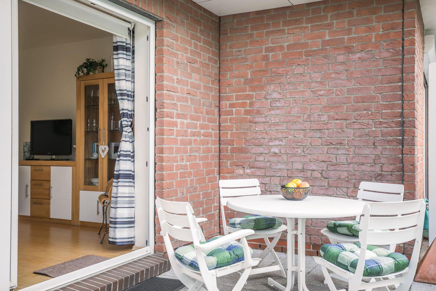 Der geräumige Wohn-Essbereich verfügt über gemütliche Sitzplätze, die zum Verweilen einladen. Die Südterrasse Terrasse lädt dazu ein, die frische Nordseeluft zu genießen und Sonne zu tanken.
