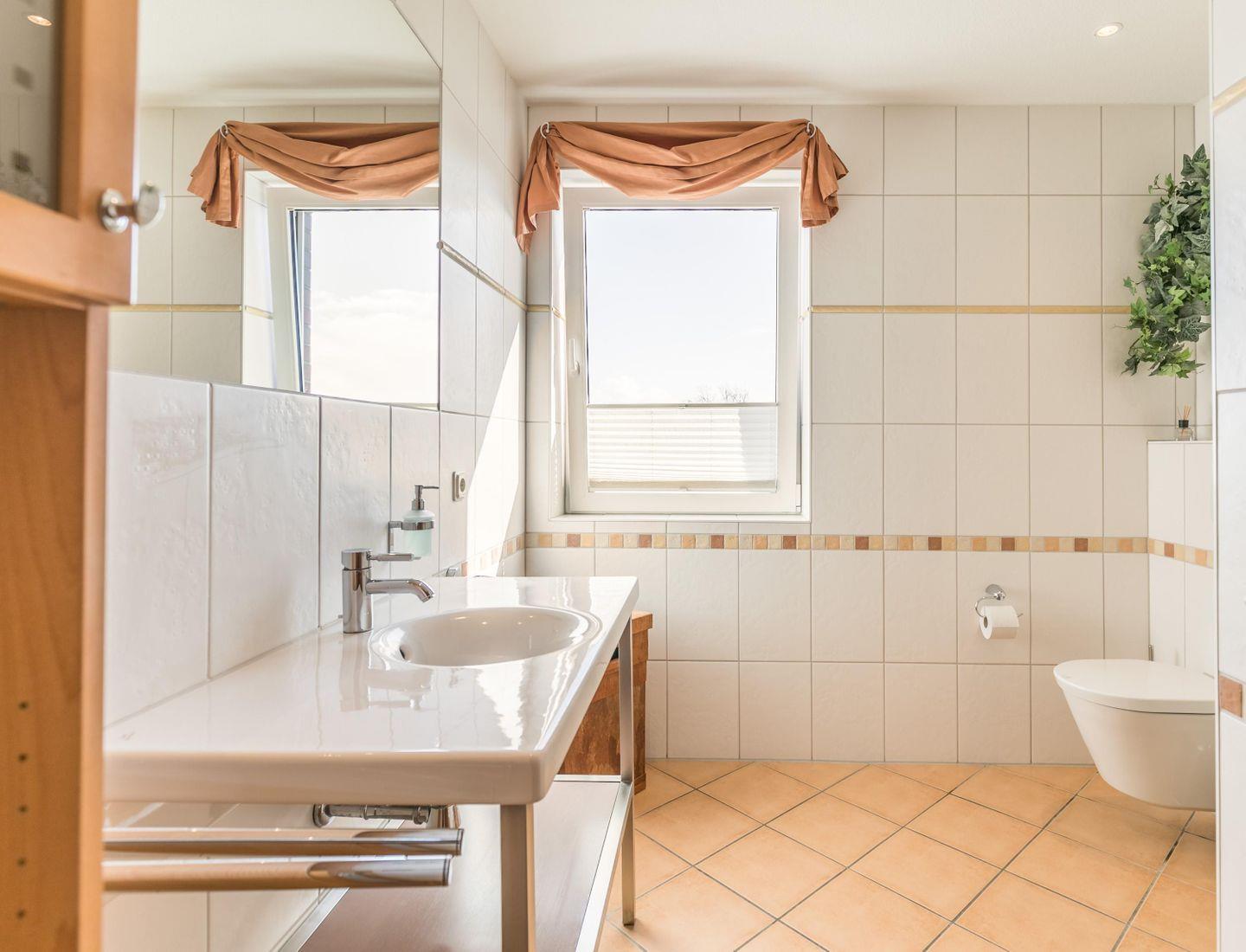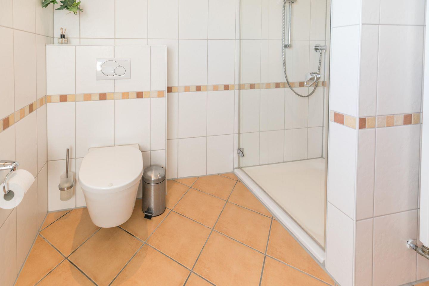 Dusche, WC, Waschtisch, Wäschehocker, Abluft