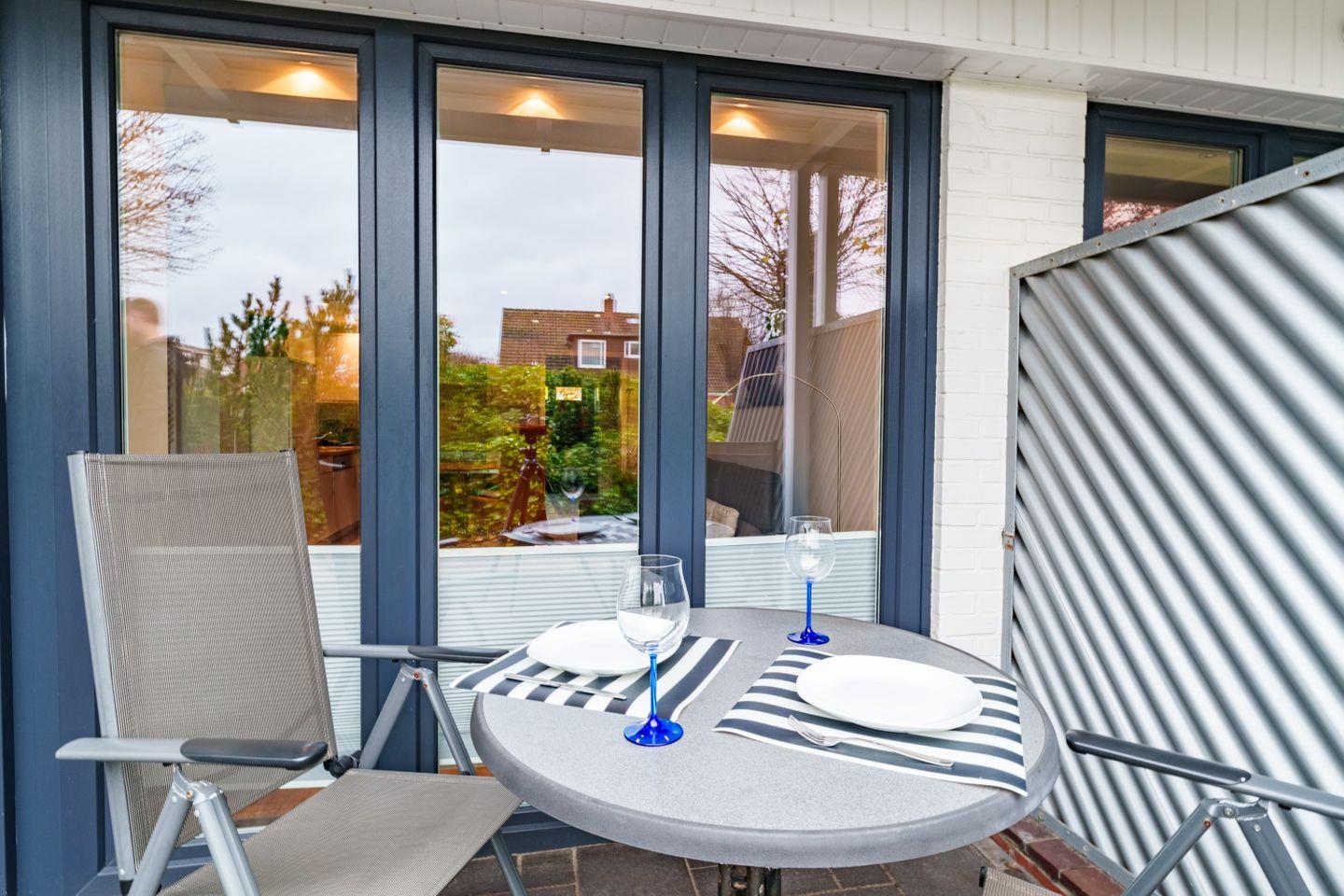 Diese behindertenfreundliche 2-Raum Ferienwohnung in exzellenter Lage mit 60m² und 2 Terrassen (Ost- und Westlage) befindet sich im Erdgeschoss des "Appartementhaus Meeresbucht". Ein Hund darf gerne mitgebracht werden. Zur Ausstattung zählen WLAN, offener Küchenbereich mit Ceranfeld, Spülmaschine, Waschmaschine und Trockner (gemeinschaftlich), TV, Strandkorb sowie ein kostenloser Privatparkplatz.