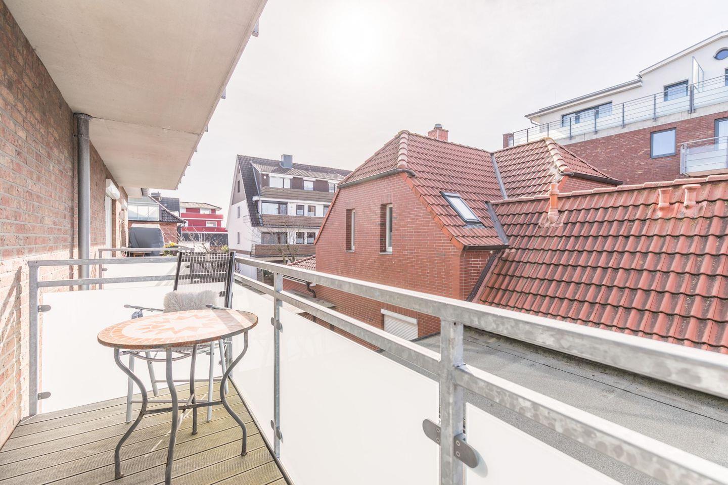 Genießen Sie auch auf dem langen Balkon die Sonnenstrahlen.