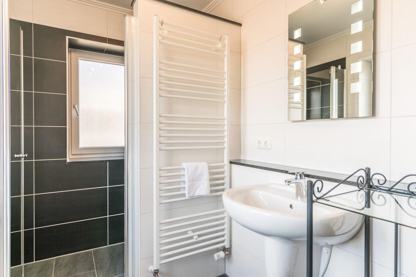 Dusche, WC, Spiegel, Waschbecken, Fenster, Handtuchwärmer, Föhn