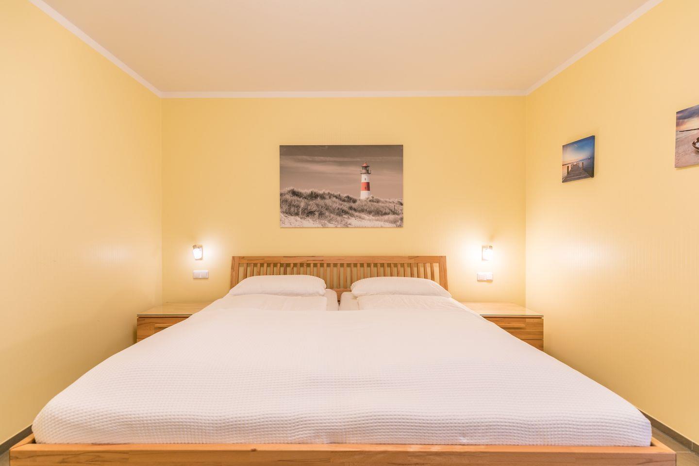 Zwei Schlafzimmer mit Doppelbetten in Komforthöhe und Außenrollläden sorgen für erholsame Nächte. Die Wohnung ist barrierearm gestaltet, verfügt über einen Aufzug und ist allergikerfreundlich eingerichtet – ideal auch für Gäste mit eingeschränkter Mobilität. Babys sind auf Anfrage willkommen.