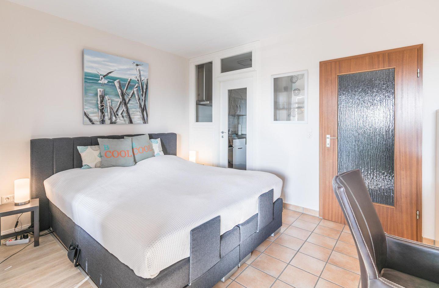 Boxspringdoppelbett (1,80x2,00m), Nachttische, Lampen, TV, Sofa, Sessel, Esstisch mit Stühlen, Mikro-CD-Anlage, Zugang zum Balkon, Anrichte, Regal