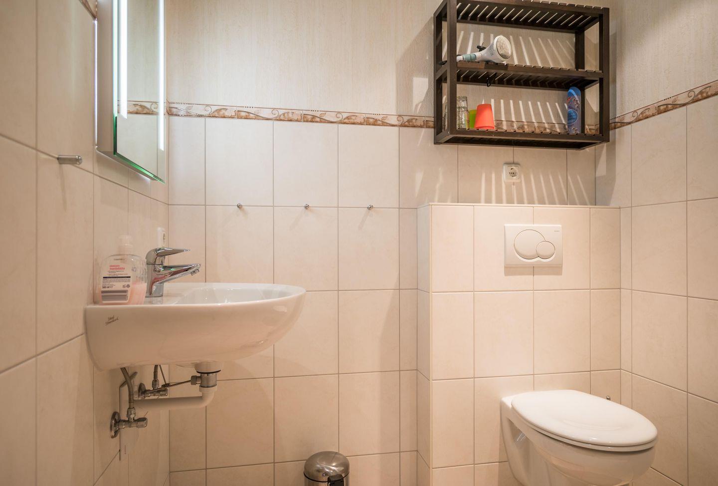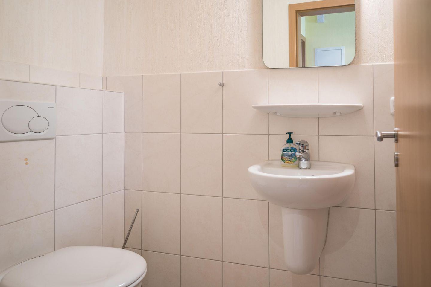 WC, Spiegel, Waschbecken, Handtuchtrockner, Abluft