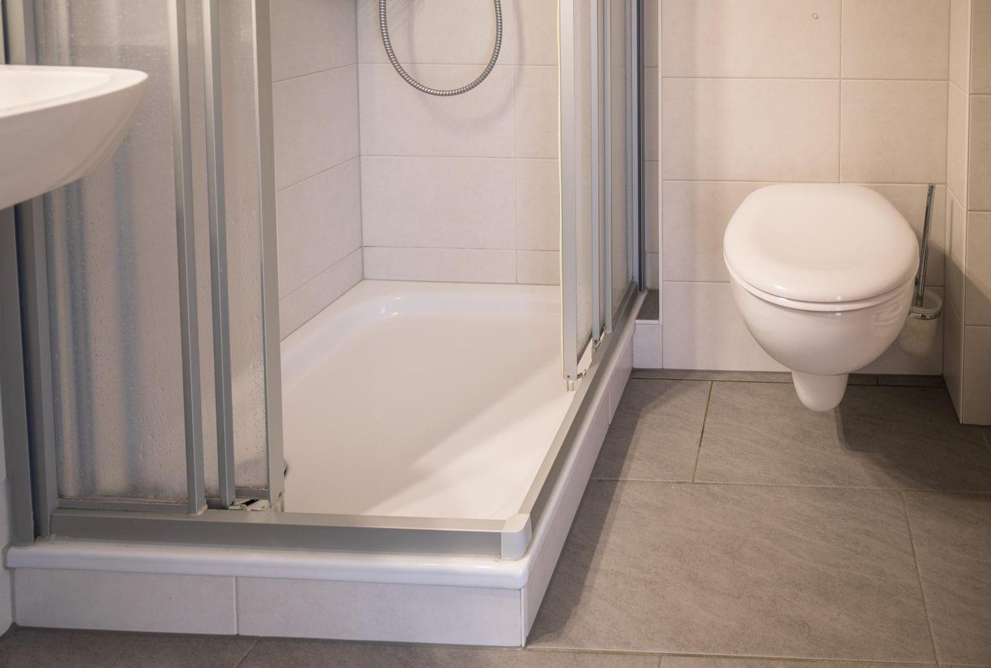 Dusche, WC, Waschbecken, Spiegel, Föhn, Handtuchtrockner, Abluft