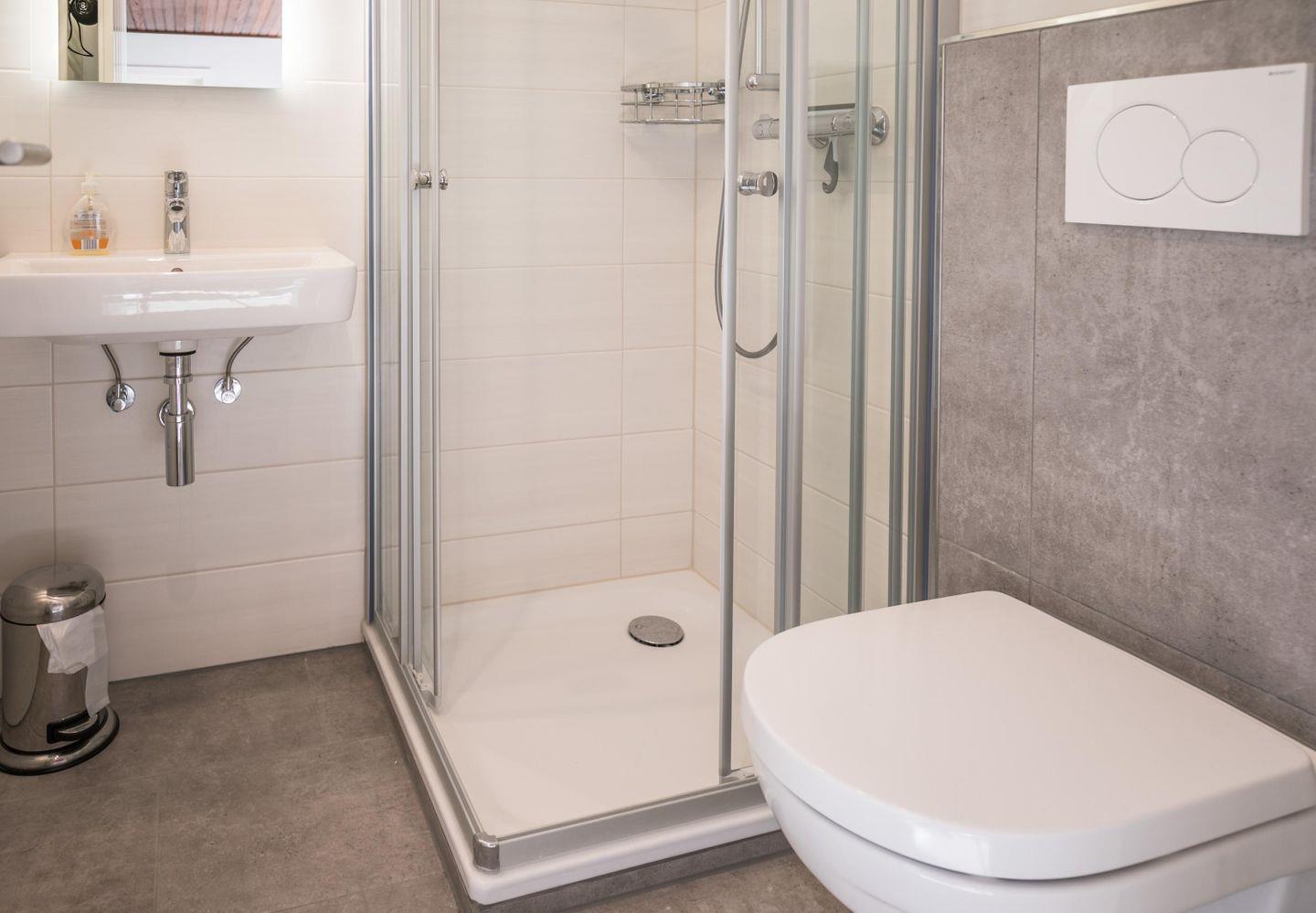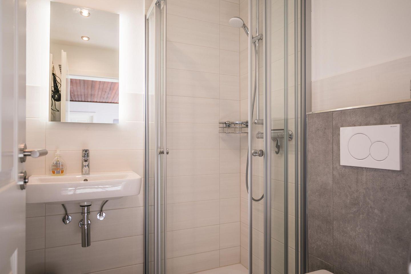 Dusche, WC, Waschbecken, Spiegel, Abluft, Föhn