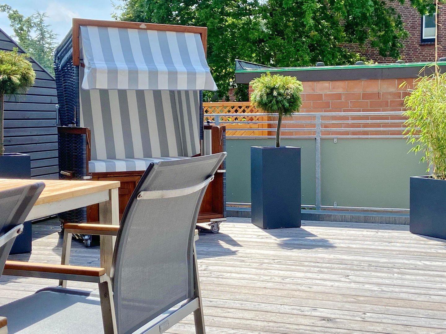 HWR, Waschtrockner, W-LAN, Telefon, möblierter Balkon, Strandkorb, Hochstuhl und Kinderreisebett inklusive, Bügelbrett + Bügeleisen, kleine Haustiere erlaubt, 1 kostenloser Tiefgaragenstellplatz (2m Einfahrtshöhe), Garderobe, gemeinschaftlicher, abschließbarer Fahrradabstellraum, Fahrstuhl, barrierearm, Weber Elektrogrill, Wäsche optional dazu buchbar