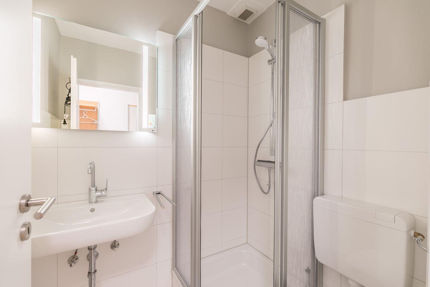 Duschbad, WC, Waschbecken, Spiegel, Föhn, Abluft