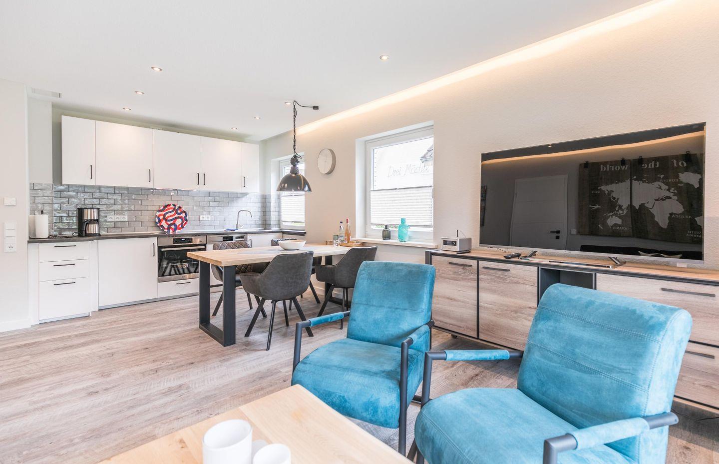 Die Wohnung 2 befindet sich im Erdgeschoss und hat einen eigene Terrasse samt Gartenmöbeln sowie hochwertigem, großen Strandkorb.