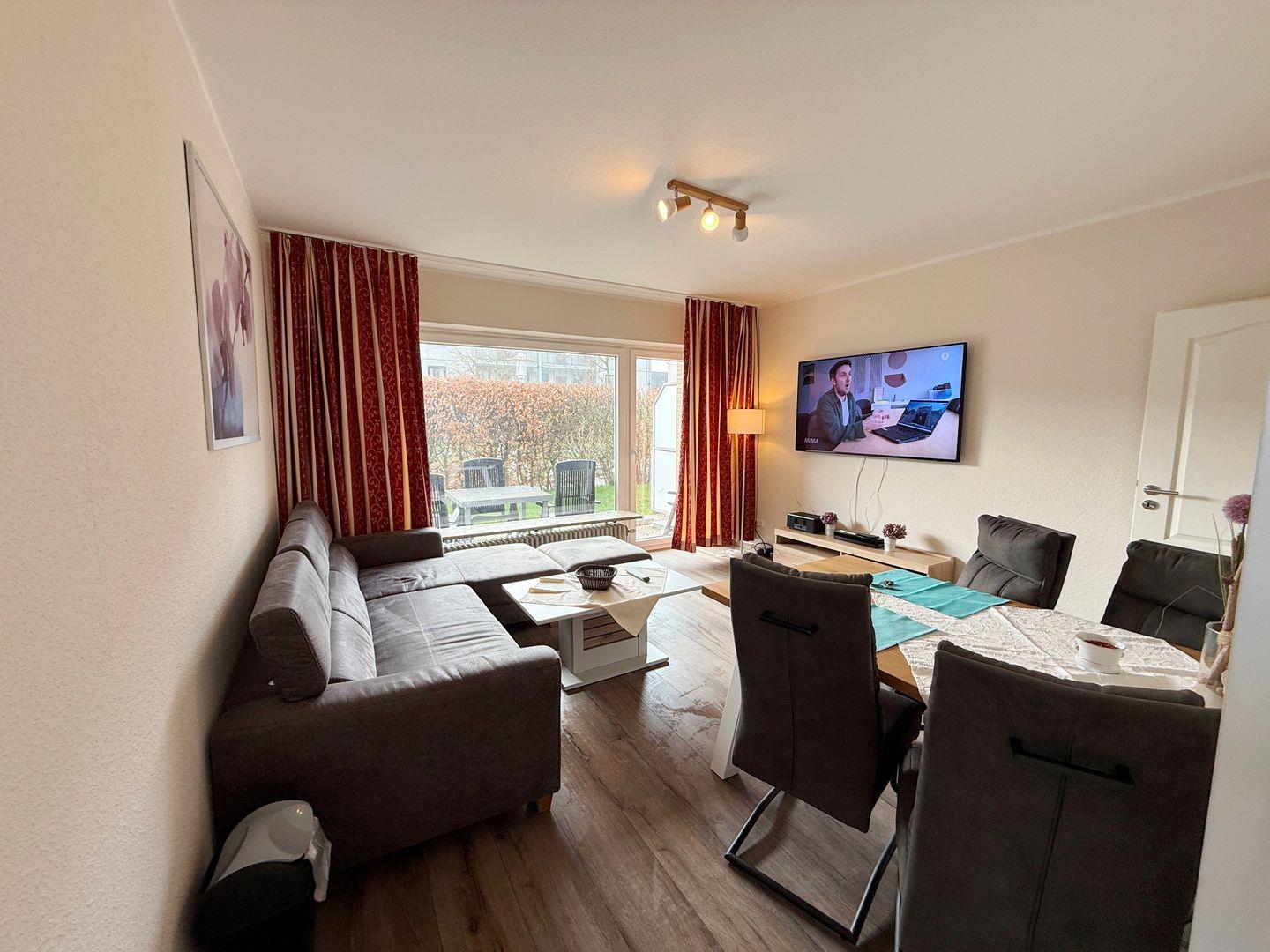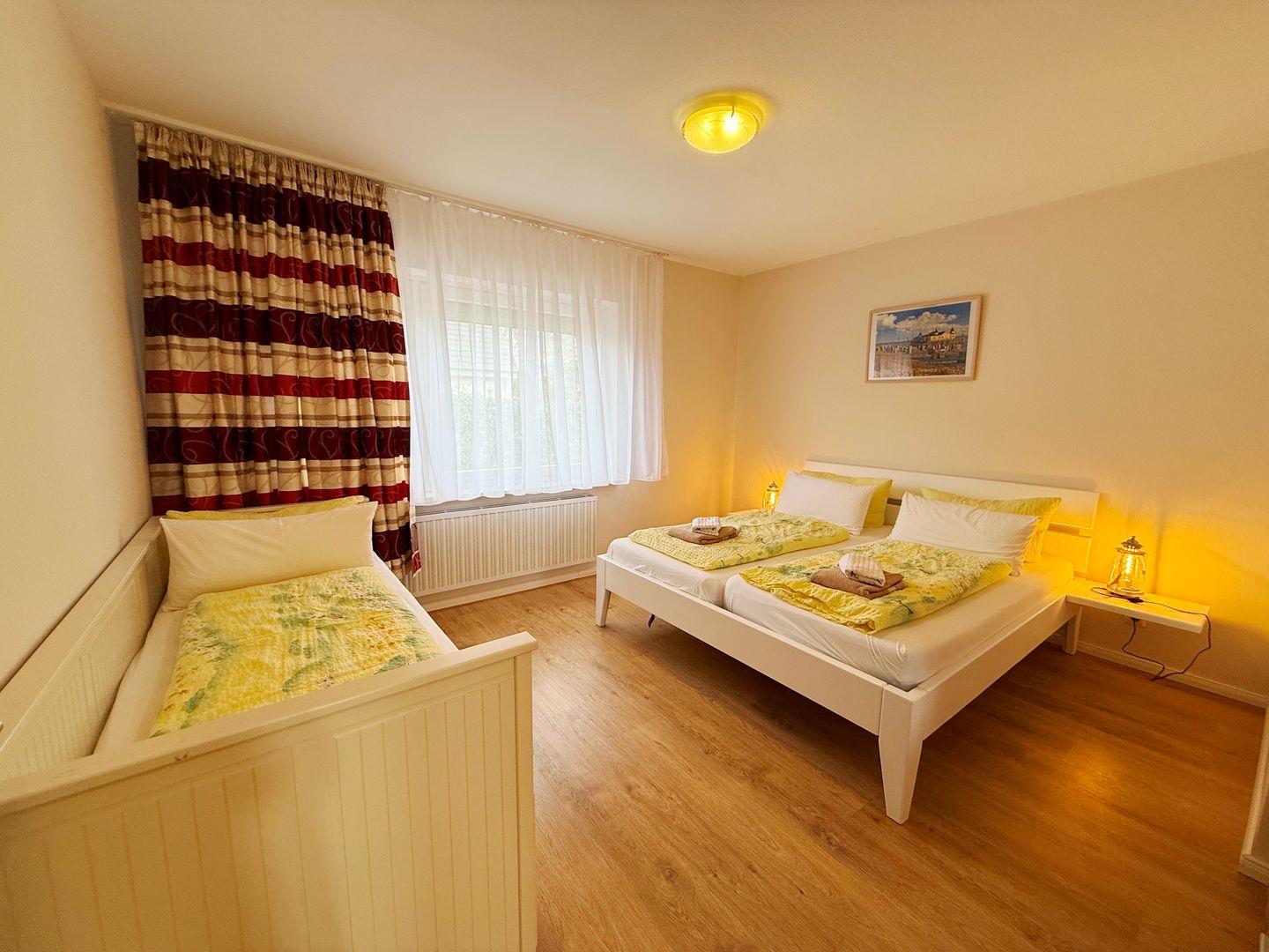 3 Raum-Wohnung für 4 Pers., 2 Schlafzimmer mit je einem Doppelbett + Zusatzbett in einem der Schlafzimmer, Parterre mit Terrasse, Wlan, 2 Bäder