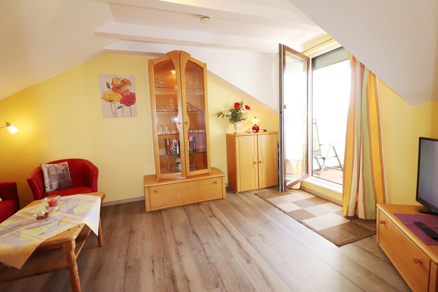 Das 2-Raum Appartement im 2. Stock auf ca. 55 m² hat 1 Schlafzimmer (1 x Doppelbett ), ein Wohnzimmer mit Balkon zur Seeseite (Süden) mit Blick auf die Nordsee, separate Küche, 2 x TV und Duschbad. Die Wohnung ist gemütlich eingerichtet. Die Einbauküche verfügt über einen Geschirrspüler, Mikrowelle, Wasserkocher, Kaffeemaschine, Toaster, sowie Geschirr für den täglichen Bedarf sind ebenfalls vorhanden. Haustiere sind nicht erlaubt.